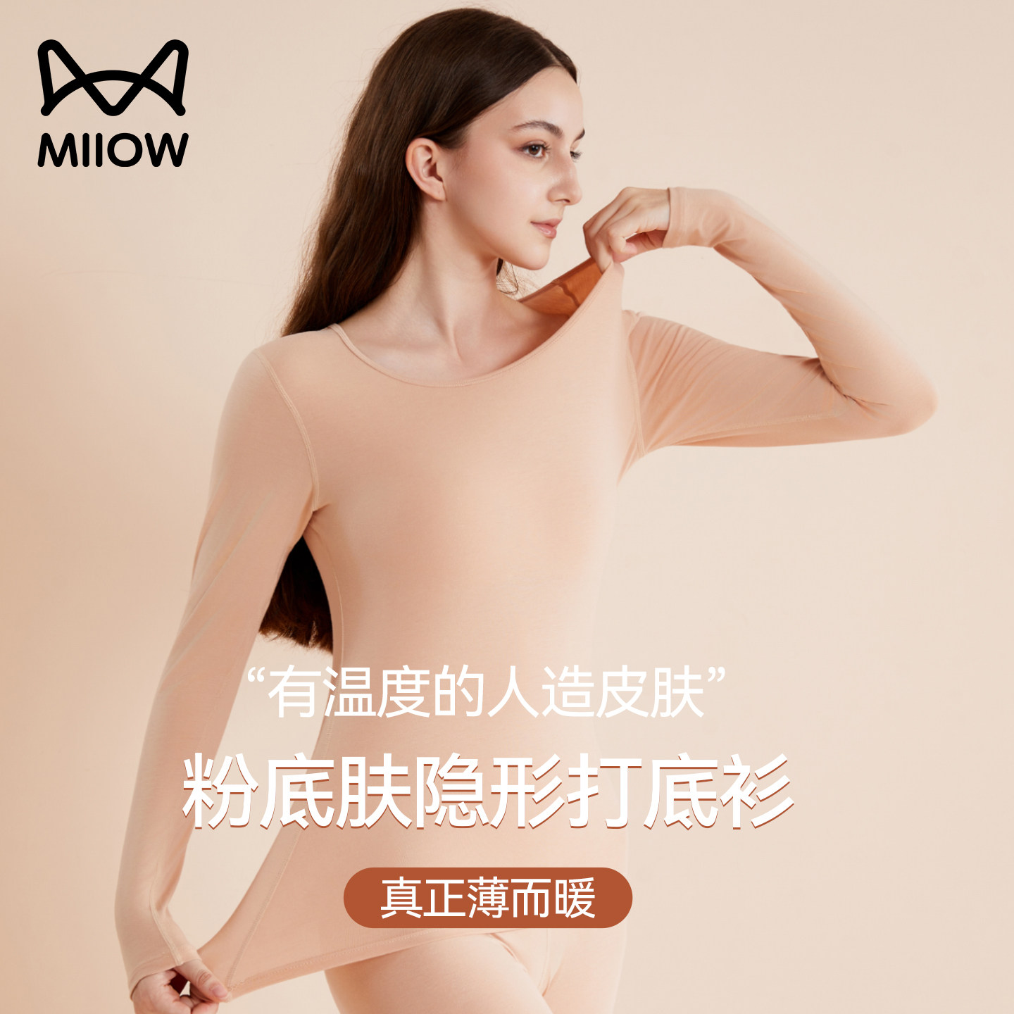 猫人兰精莫代尔情侣保暖内衣套装德绒发热男女士秋冬圆领秋衣秋裤