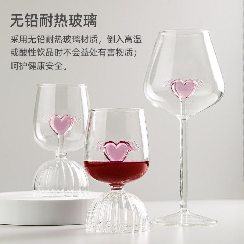 高颜值爱心起比特玻璃葡萄酒杯高脚红酒杯套装家T用高级感新婚礼