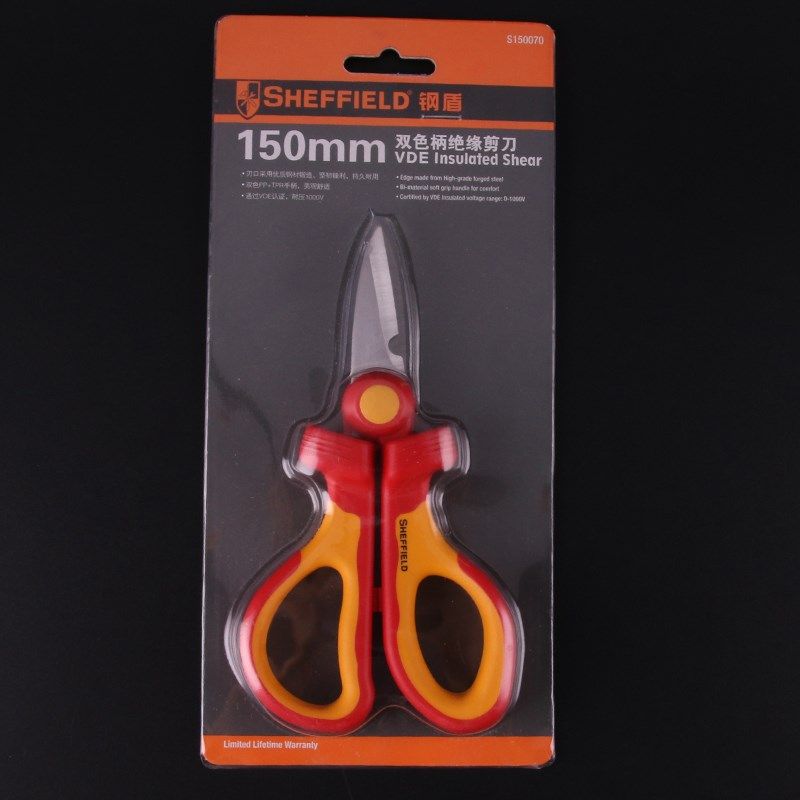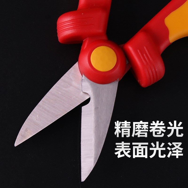 钢盾S150070双色柄绝缘剪刀绝缘线槽剪锯齿剪刀光纤跳线剥线剪