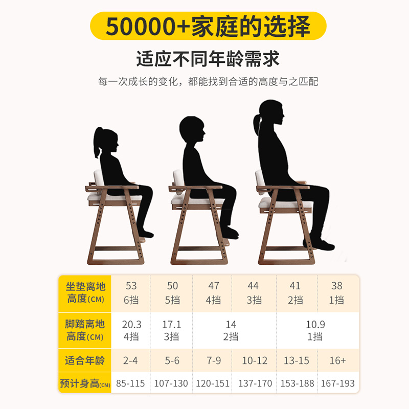 实木儿童学习椅子可升降调节座椅宝宝餐椅成长椅写字椅学生书桌椅