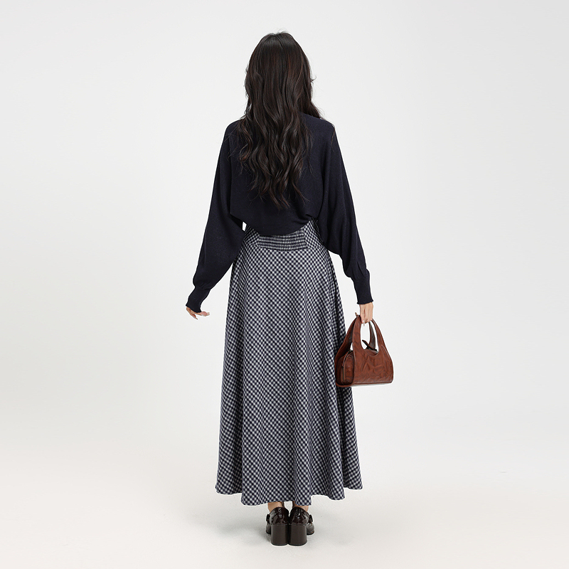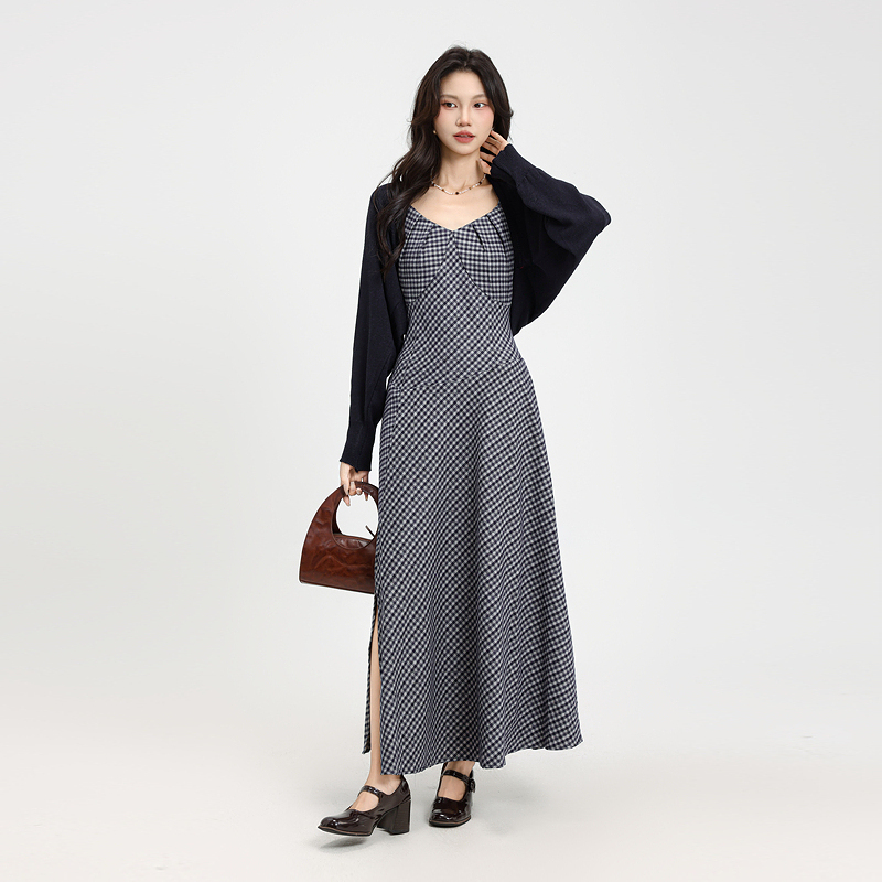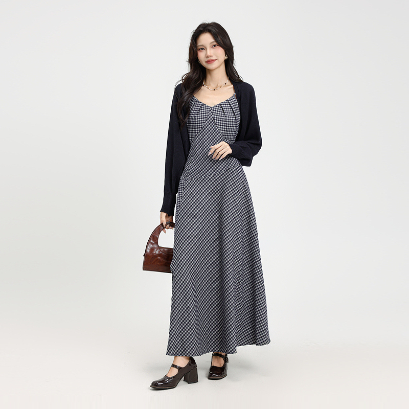 记忆的起点连衣裙套装2025秋季新款针织衫格子裙两件套69AQ85810W