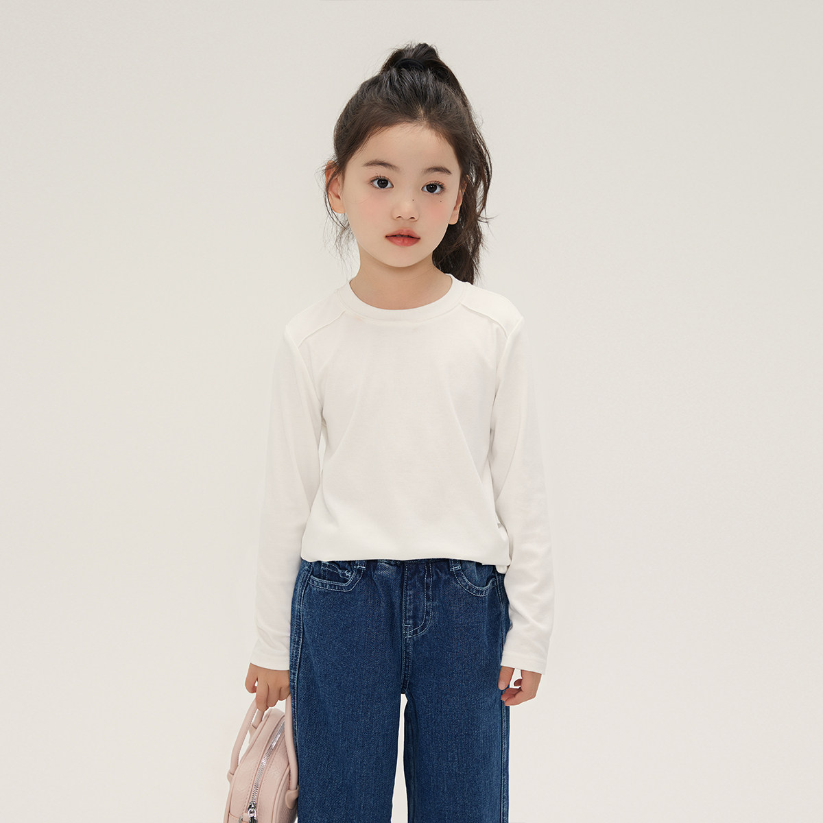 女童白色黑色长袖打底衫T恤