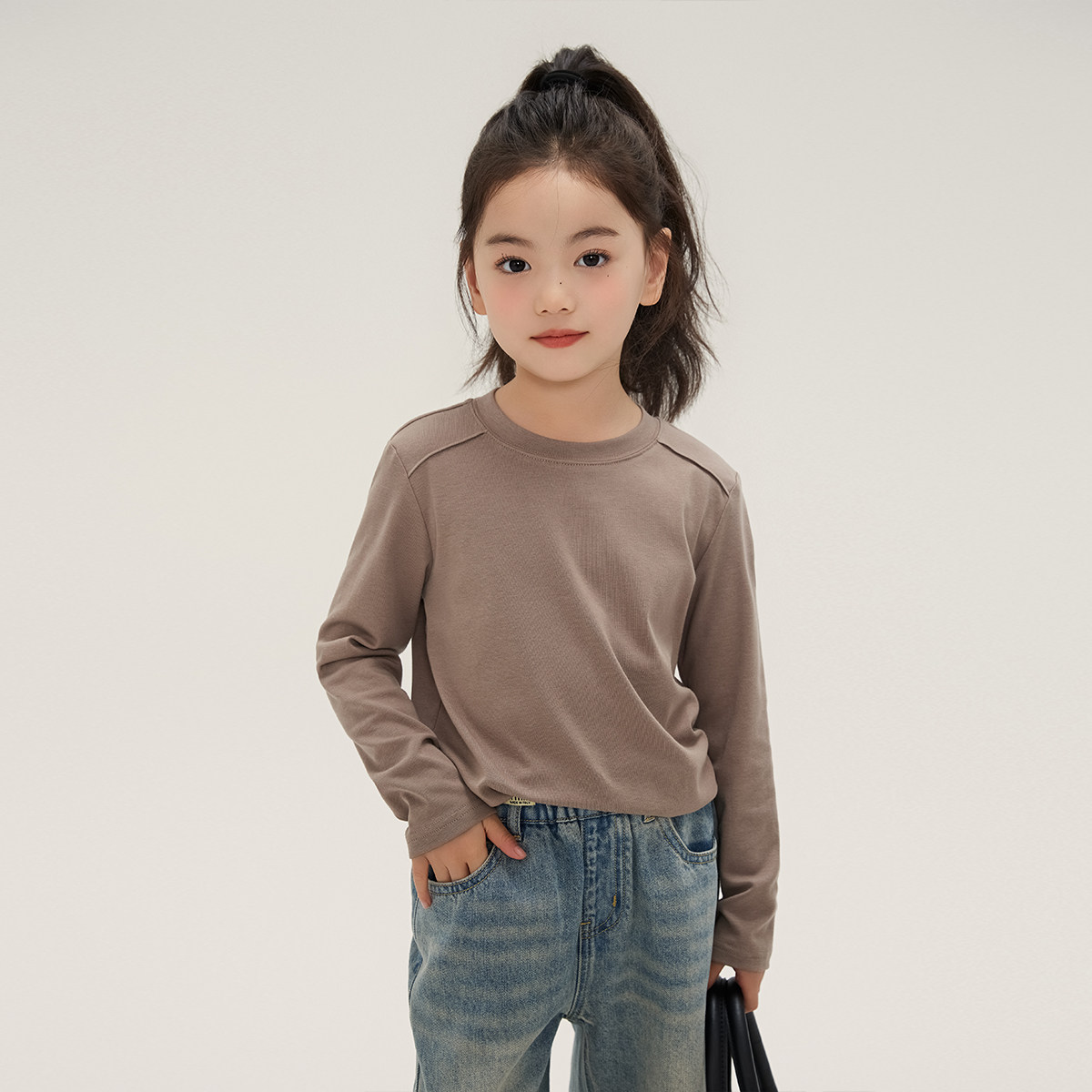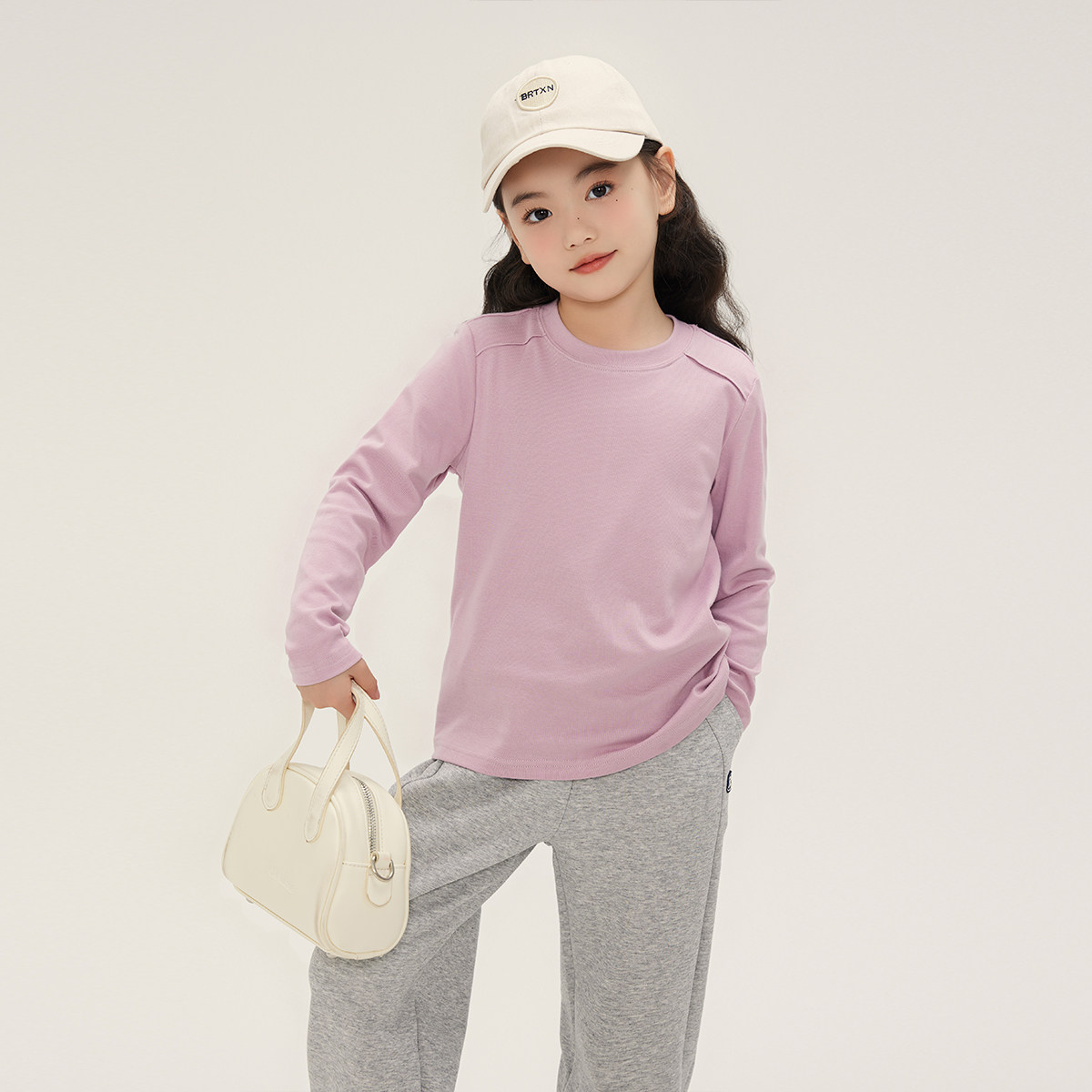 布丁哈鲁春装女童打底衫t恤长袖白色儿童春秋季2026新款黑色圆领
