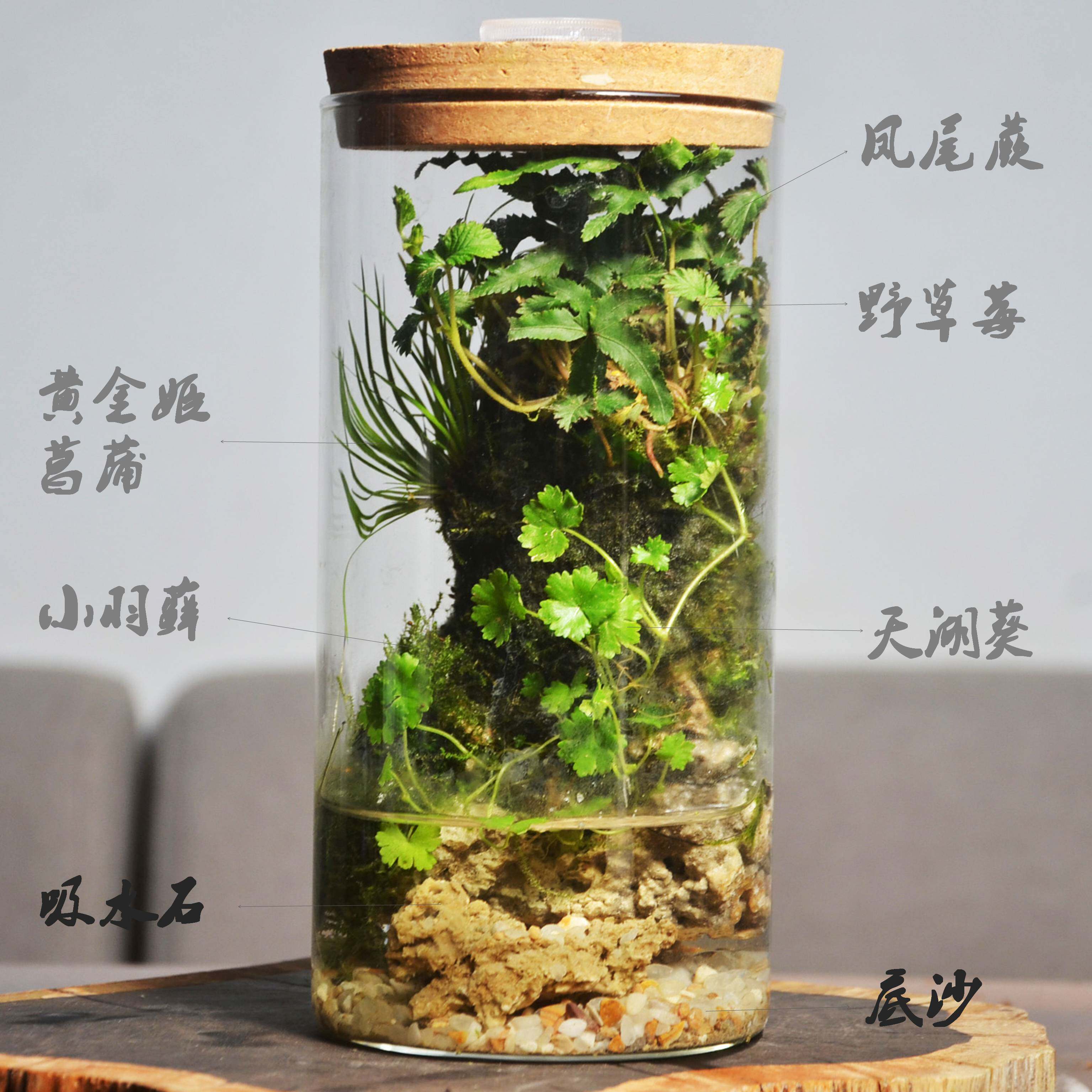 苔藓微景观盆栽办公桌小盆景雨林缸菖蒲吸水石玻璃生态瓶礼物耐养