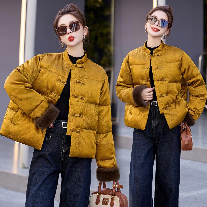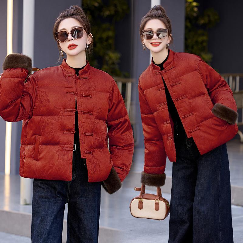 新中式国风短款羽绒服女2024冬新款小个子复古小立领盘扣刺绣外套