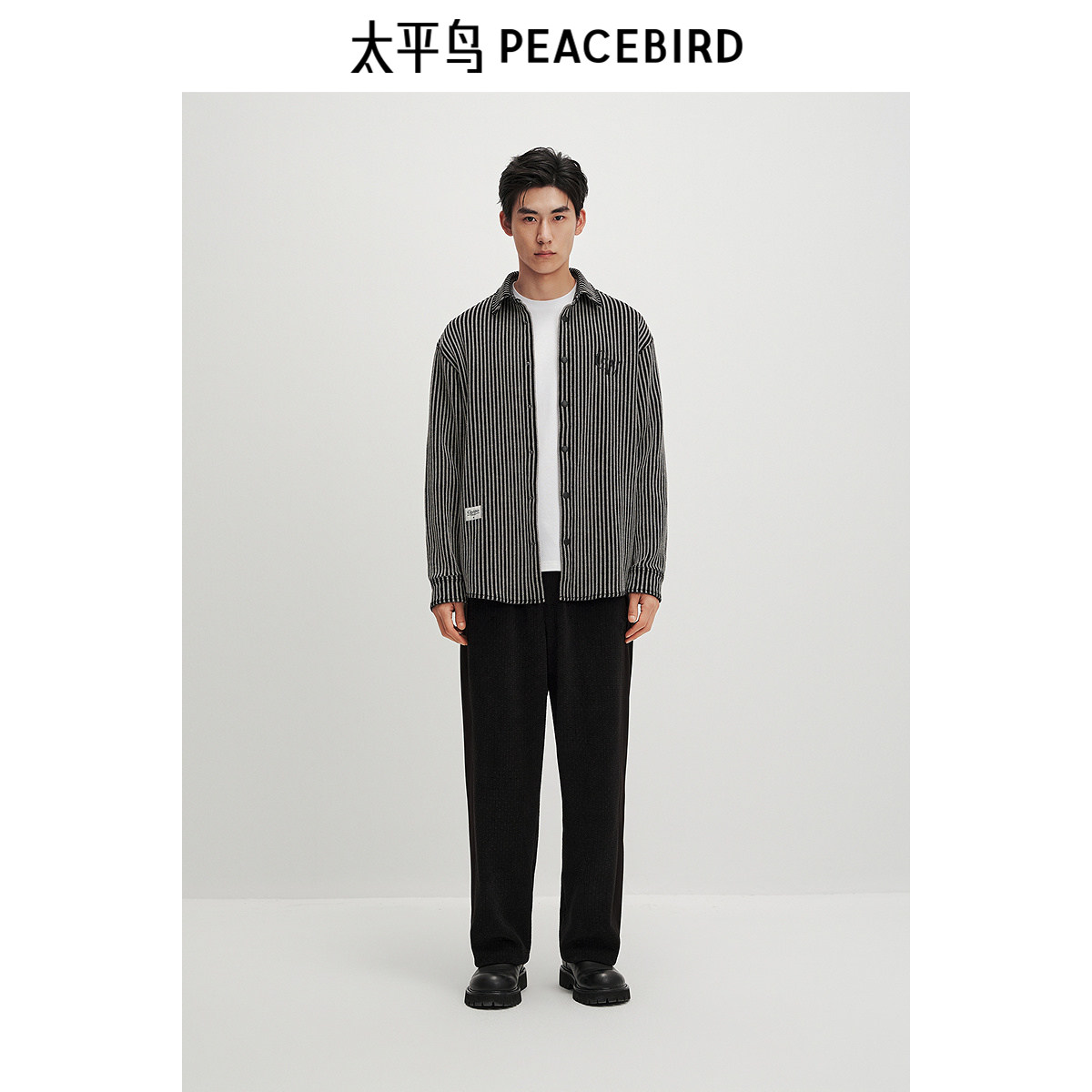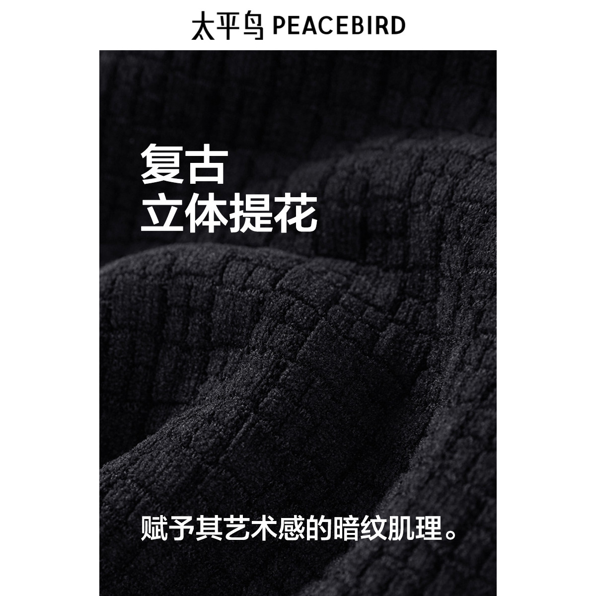 太平鸟男装休闲裤秋季宽松直筒卫裤复古提花纹理运动抽绳裤