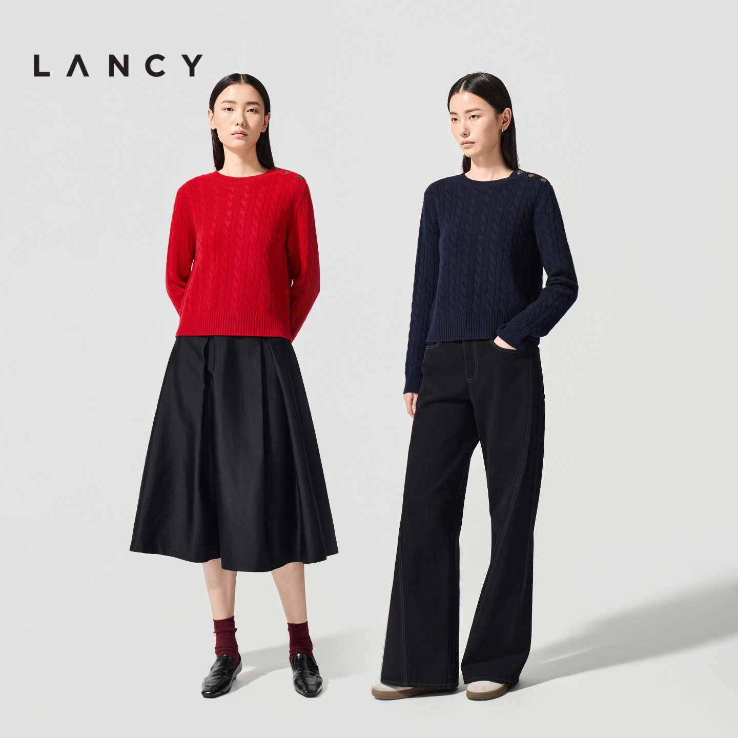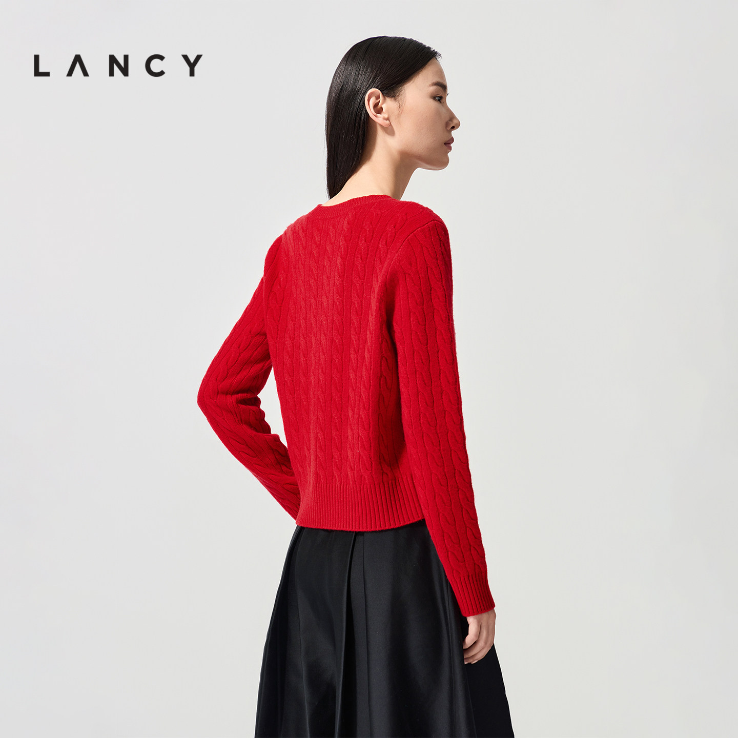 【沈羽洁同款丨马踏春风】LANCY/朗姿2026春新款纯羊毛绞花针织衫