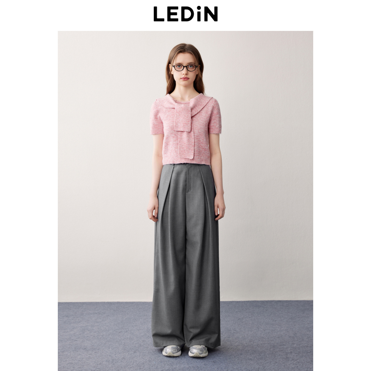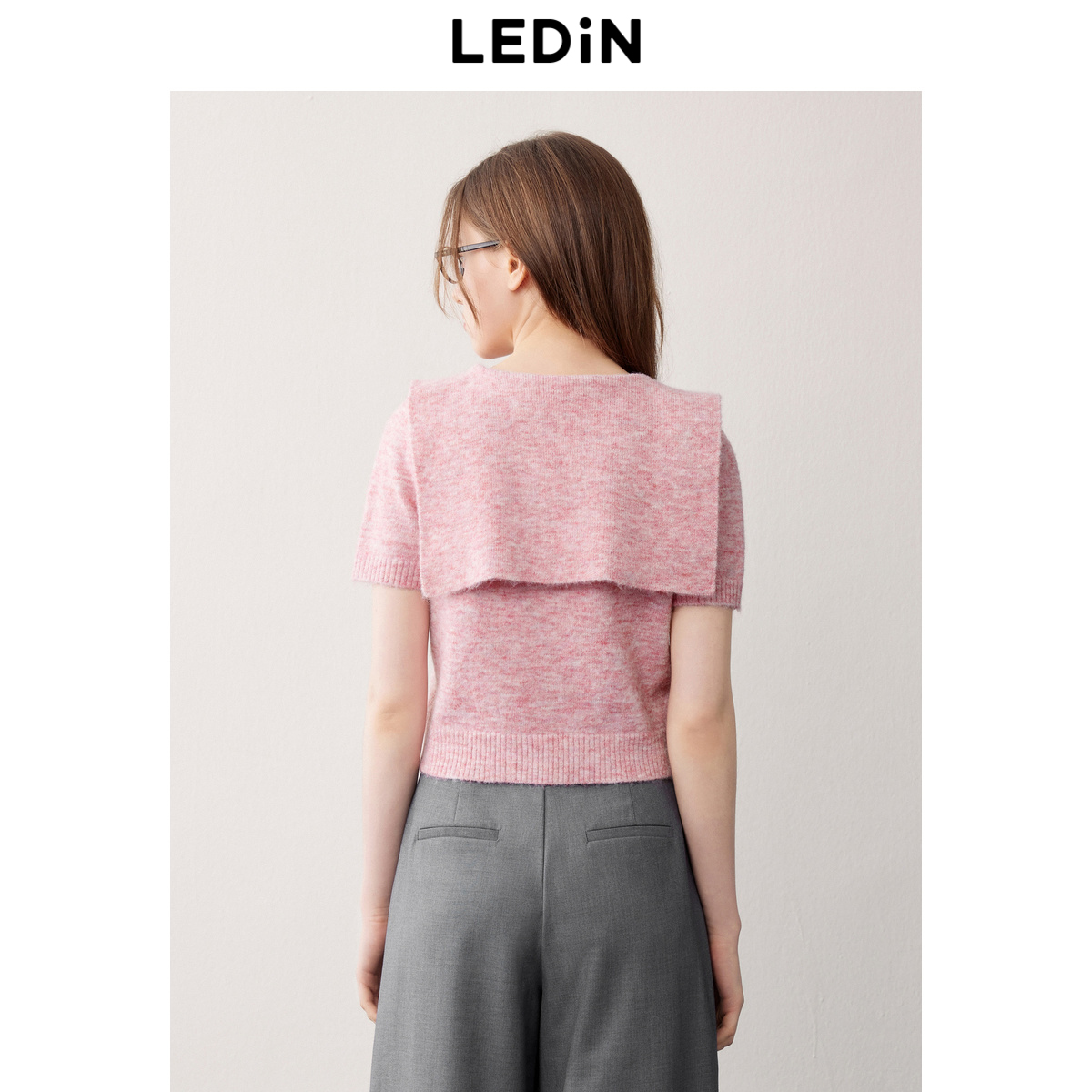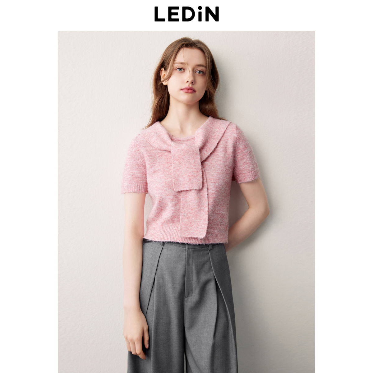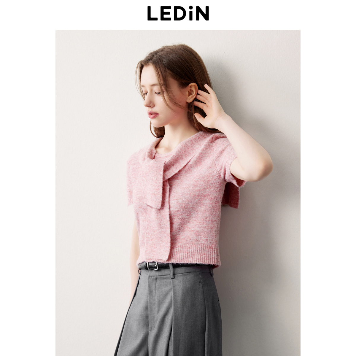 乐町披肩款短袖套衫女秋季新款清甜格雷系合体针织衫上衣