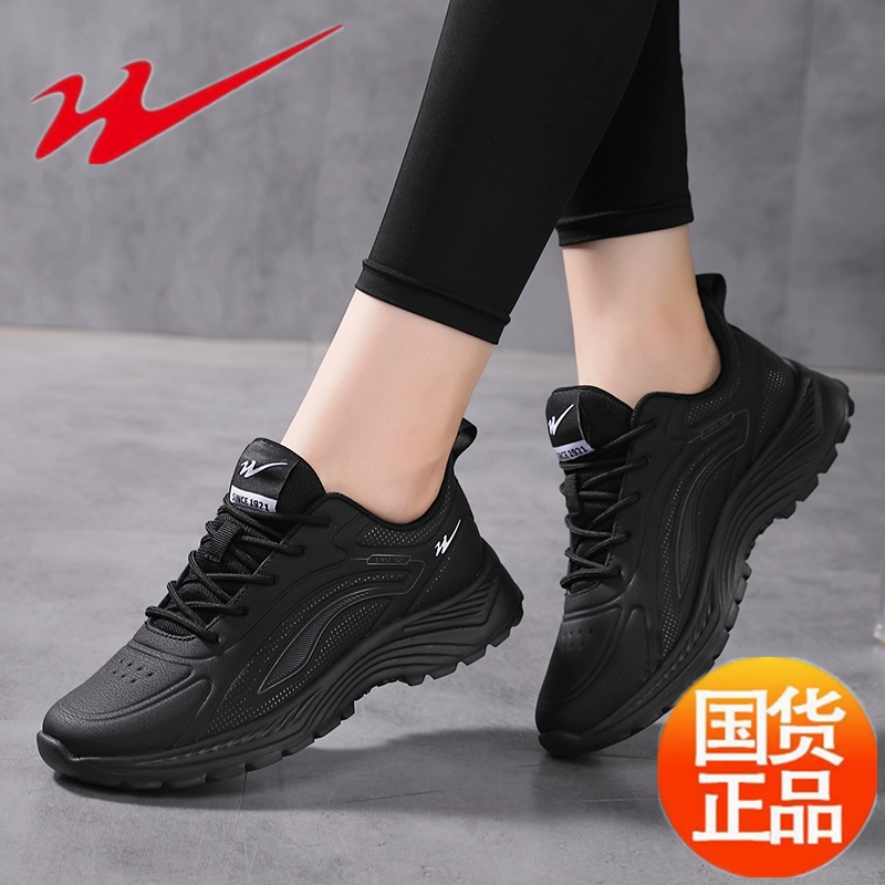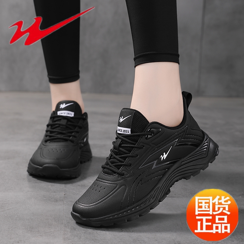 双星女士防水防滑2025秋冬新款超纤真皮面休闲运动妈妈轻便跑步鞋