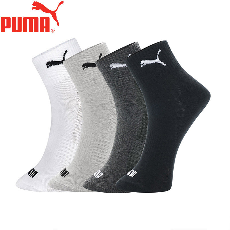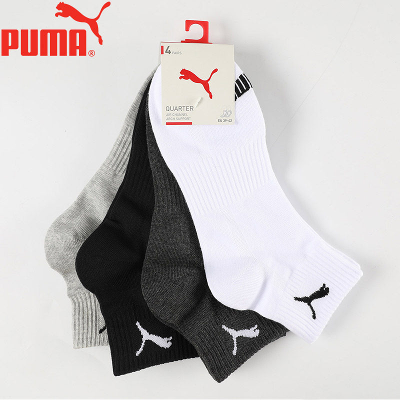 PUMA彪马袜子男女士经典黑白灰纯棉柔软吸汗透气中筒袜4双装