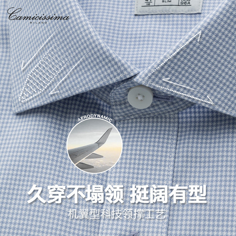 恺米切春夏新款商务休闲男士百搭千鸟格免烫长袖衬衫