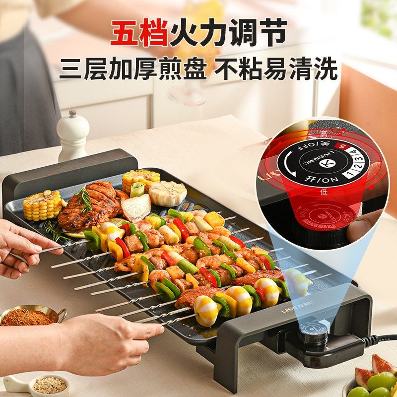 利仁电烤盘烤肉烧烤炉烤鱼炉家用大号烤肉盘煎锅烤盘一体烤肉机