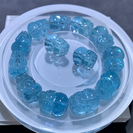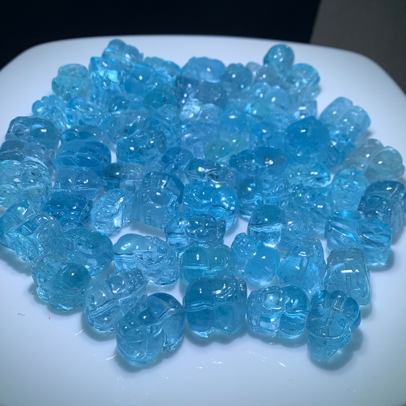 天然托帕石貔貅雕刻配件冰透碎冰随形尼泊尔伦敦蓝水晶情侣礼物女