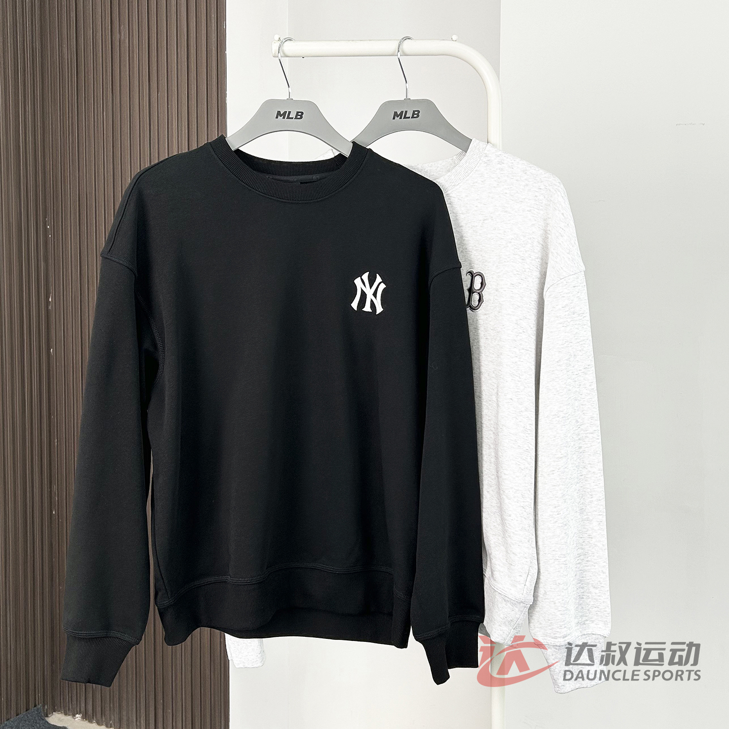 25新款MLB情侣卫衣男女NY刺绣字母印花圆领运动套头衫3AMTB3154