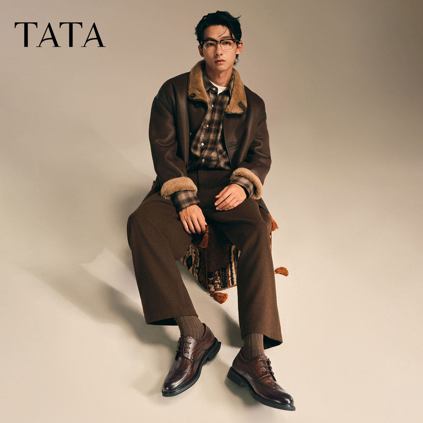 TATA他她男鞋2025新款冬商场同款纯色舒适百搭休闲皮鞋男VNL01CM5