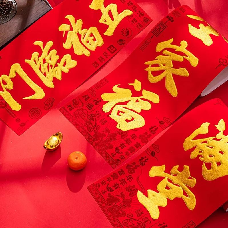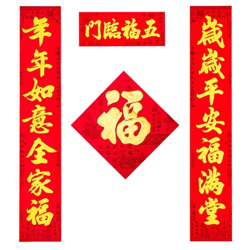 对联春节家用2024新款龙年新年过年大门装饰福字门贴植绒高端春联