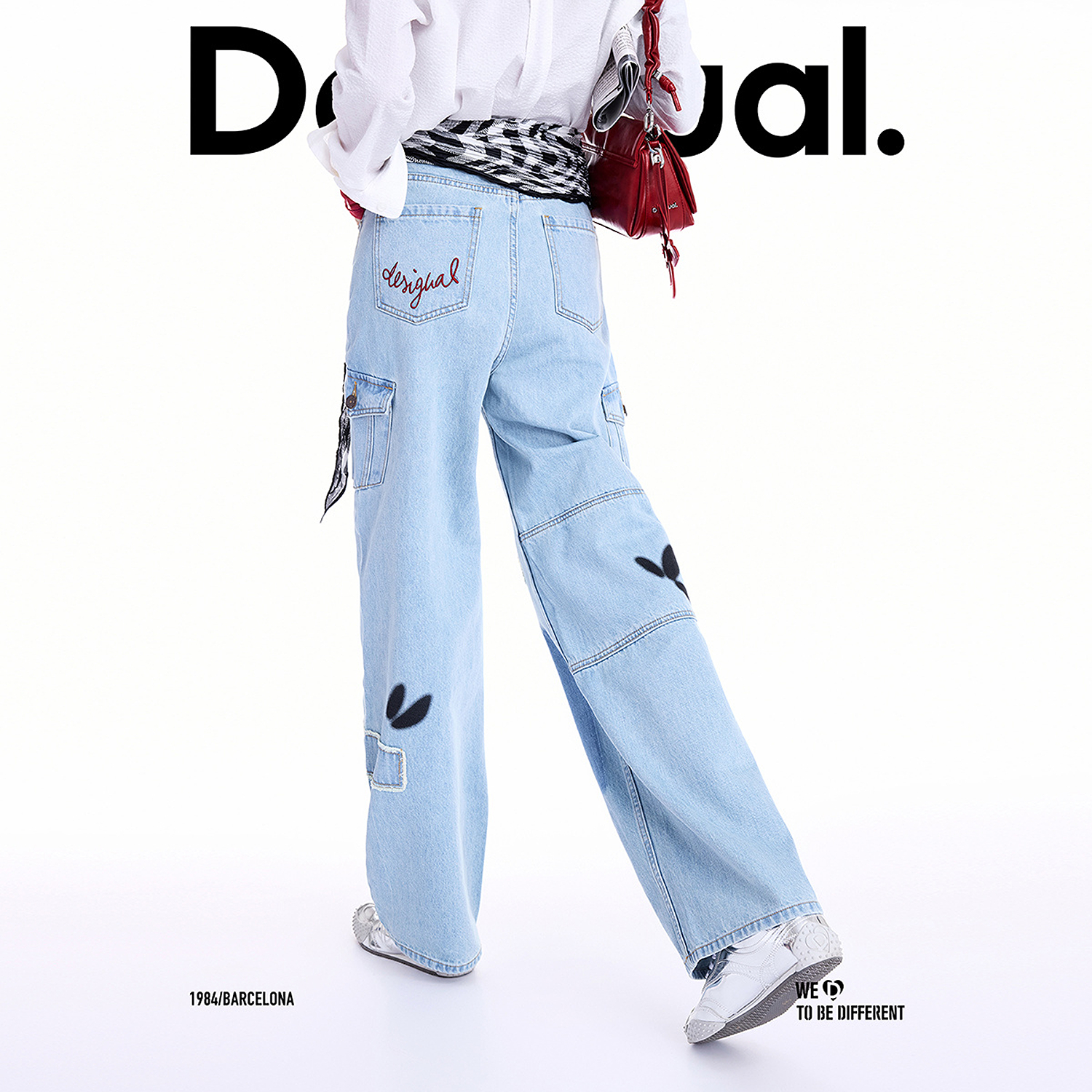 Desigual25秋冬新品花朵贴布直筒长款女式牛仔裤