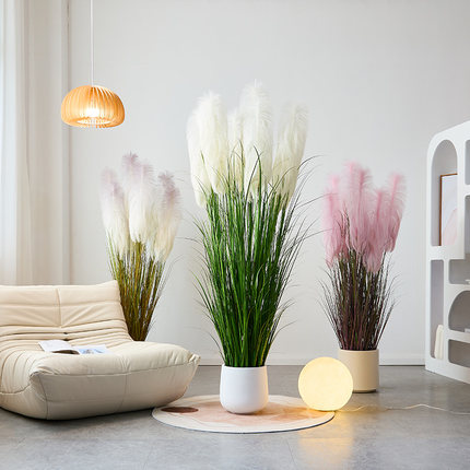 芦苇花束网红仿真干花客厅摆设落地室内摆件北欧橱窗装饰绿植粉色