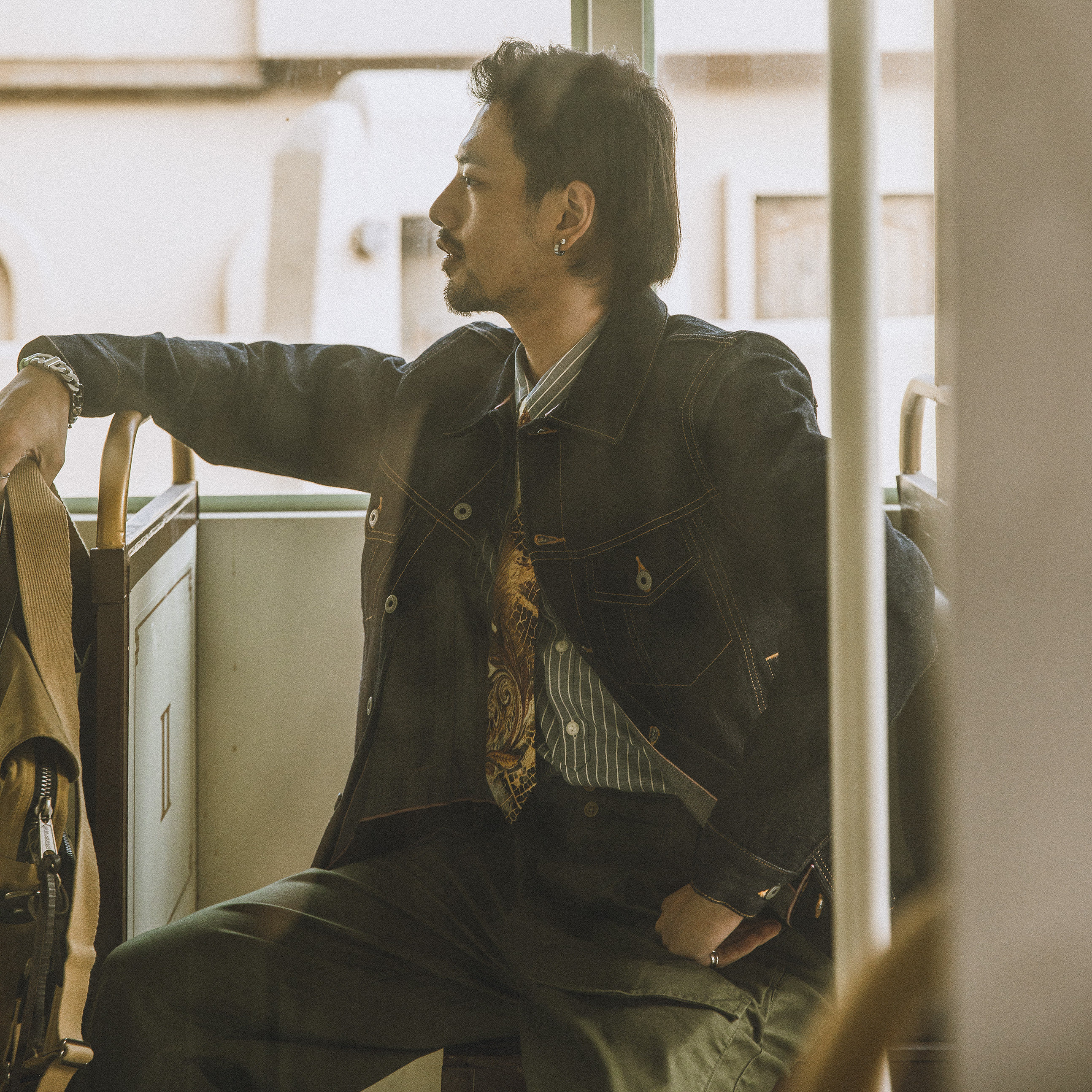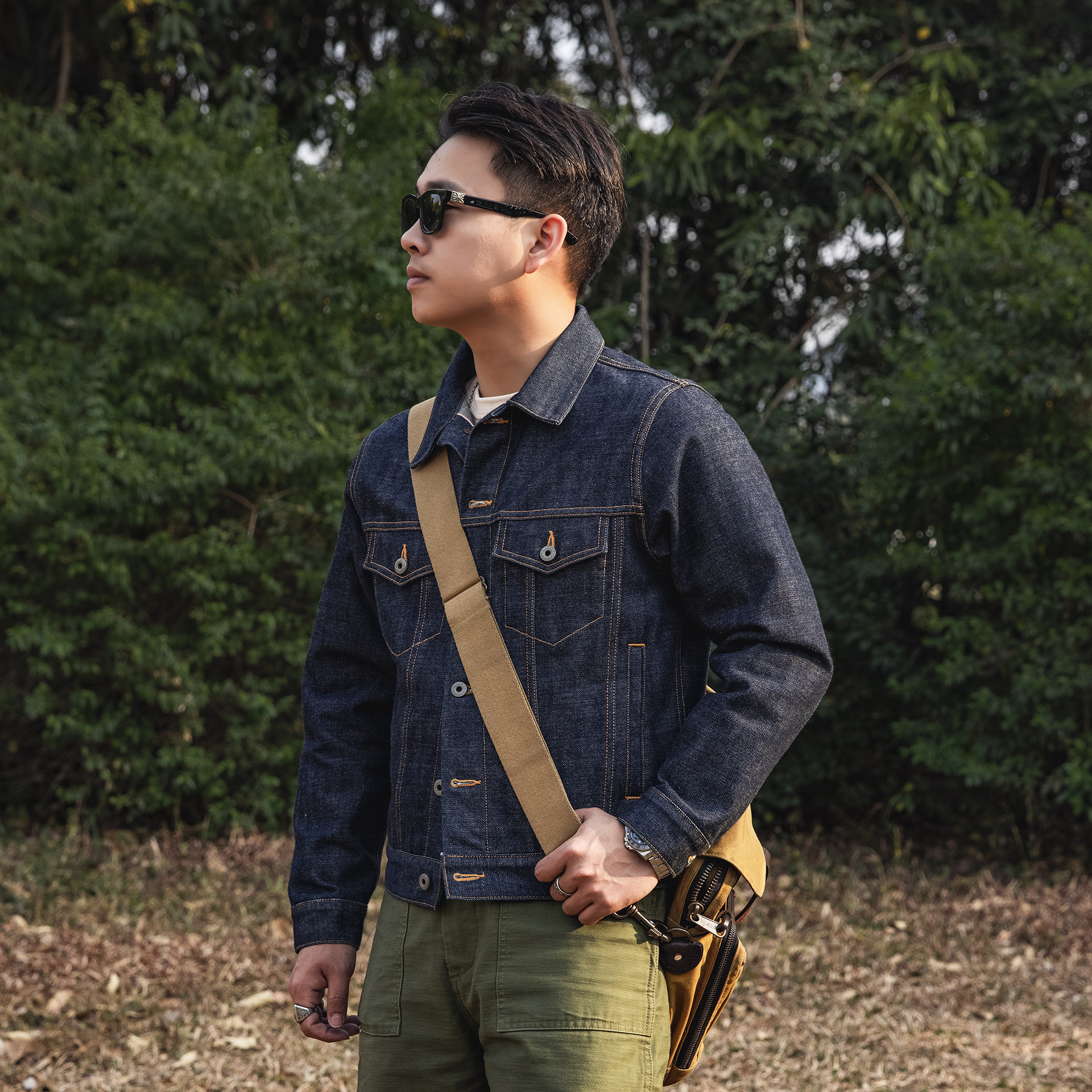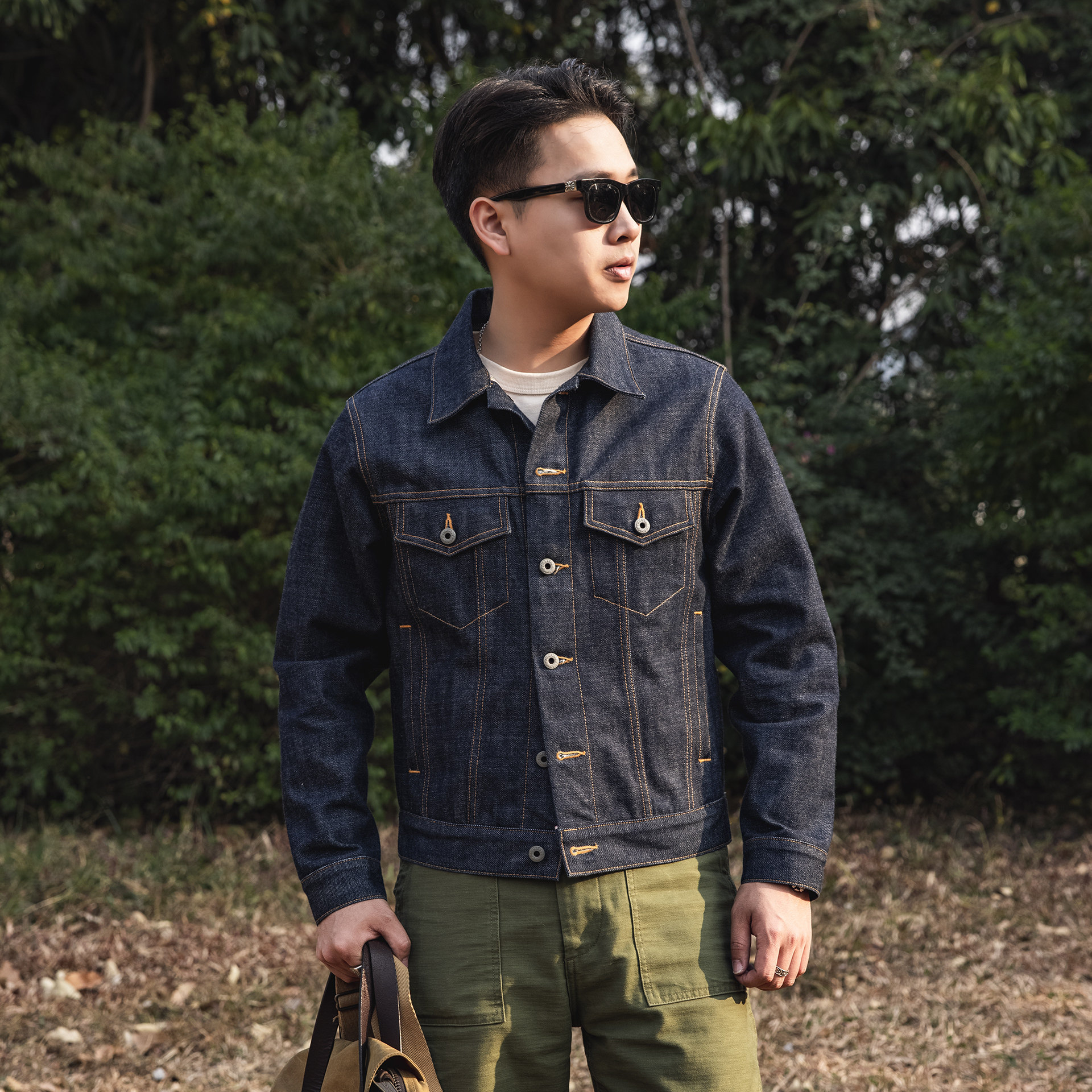 红风 复刻桃太郎面料牛仔夹克男宽松原牛牛仔衣赤耳丹宁牛仔外套