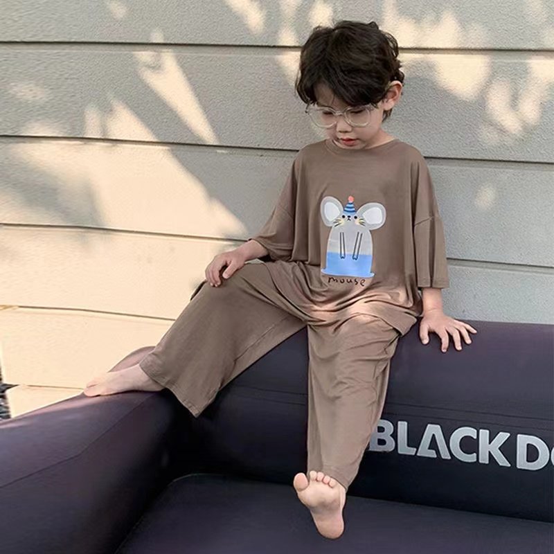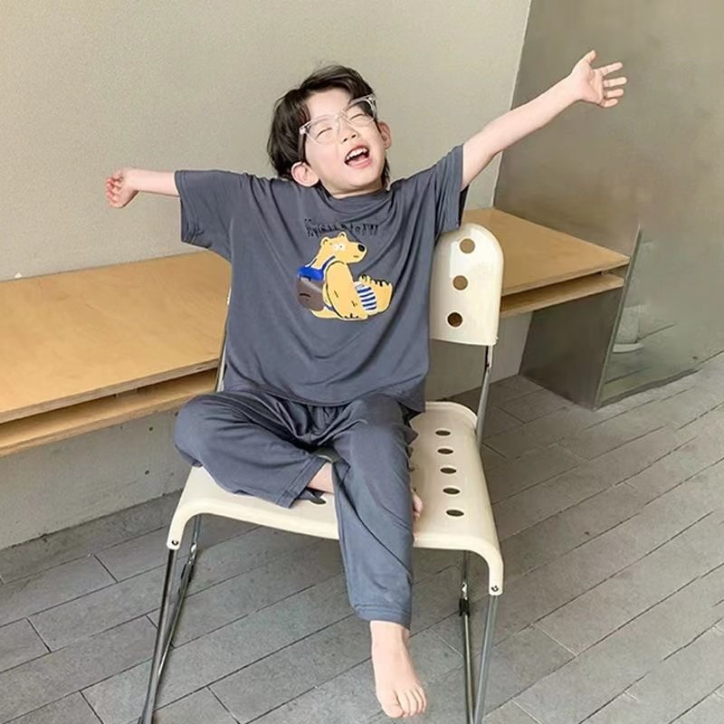 2025舒适莫代尔绵儿童亲子睡衣新款兄妹家居服短袖休闲空调服套装