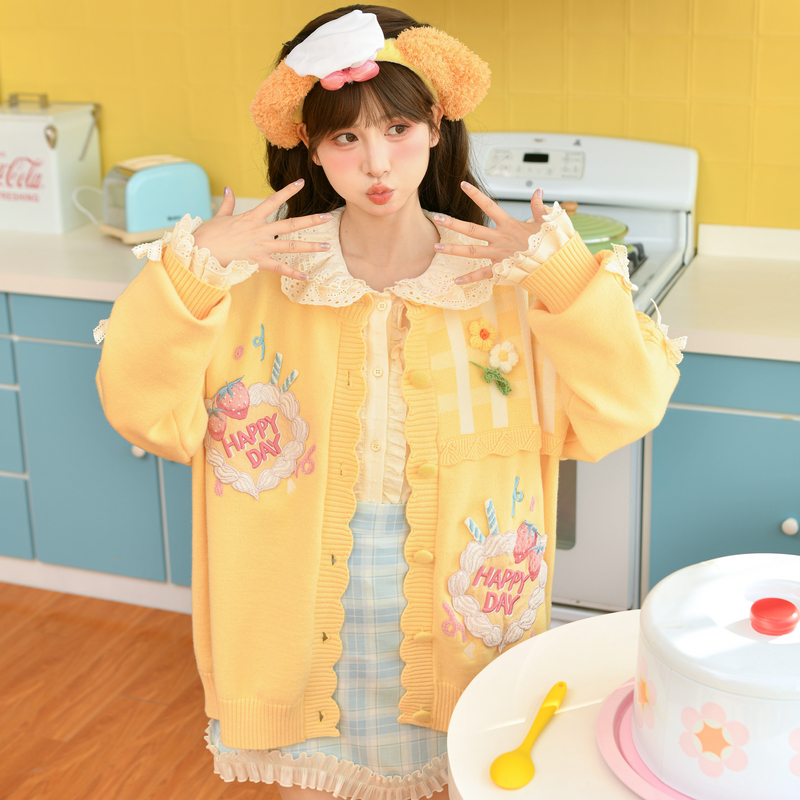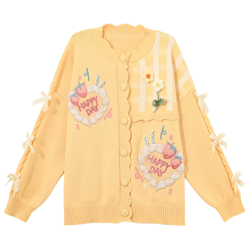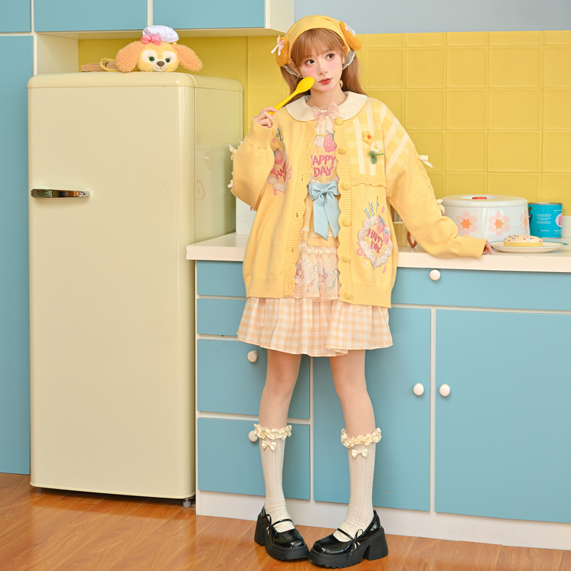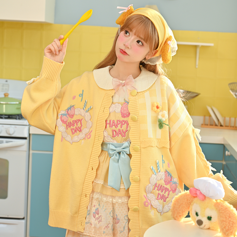 森女部落原创开春穿搭宽松针织开衫2025新款黄色可爱毛衣外套女装