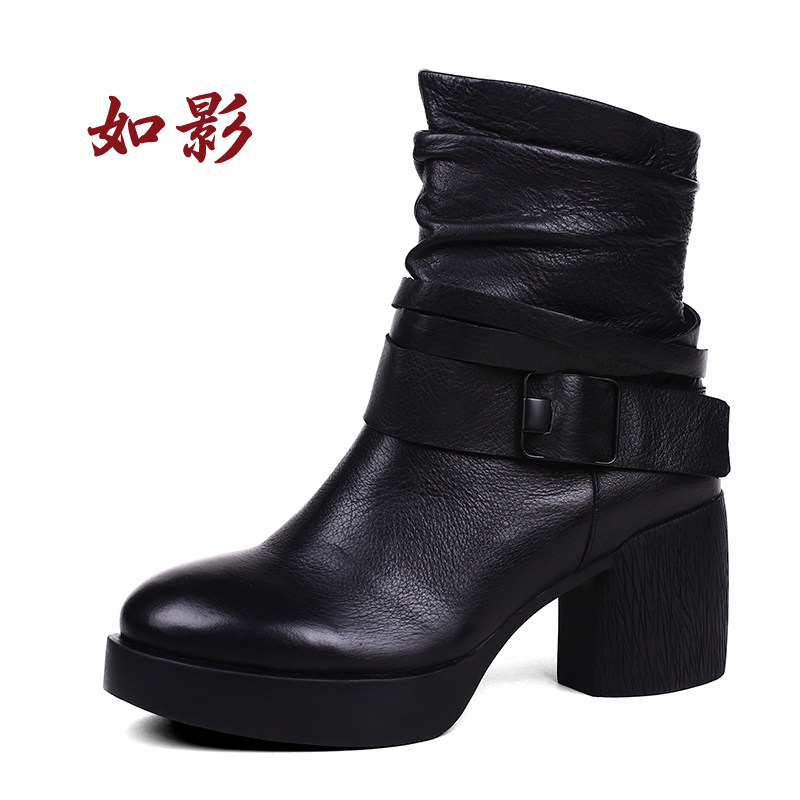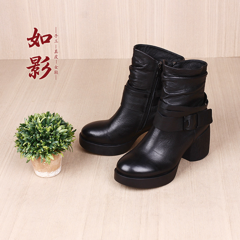 如影原创新款粗跟高端定制女靴子