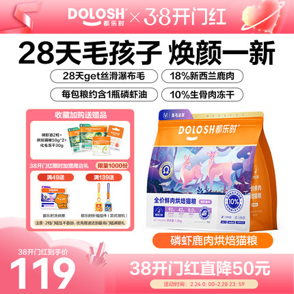 都乐时磷虾猫粮鹿肉烘焙猫粮乳鸽冻干生骨肉成猫幼猫用猫粮1.5kg