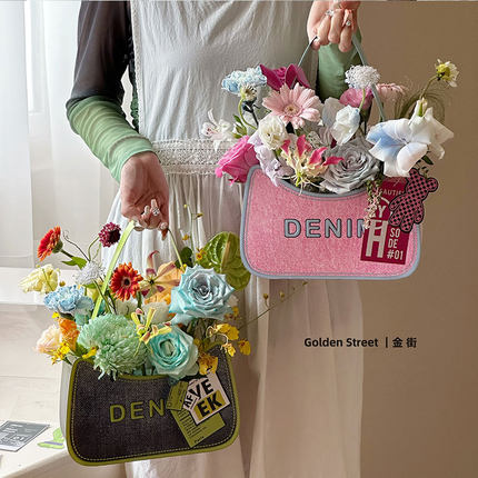 花束包装 丹宁牛仔包情人节玫瑰复古风鲜花手提礼盒插花diy包花盒