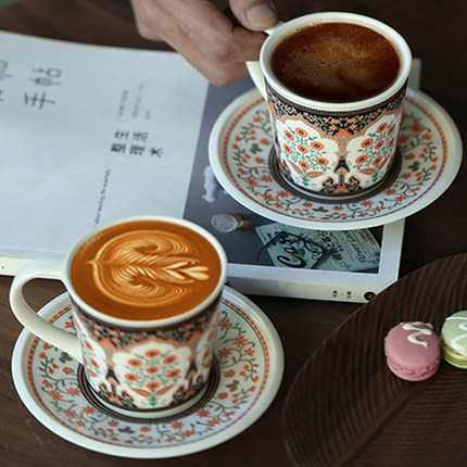 陶瓷咖啡杯碟套组土耳其拉花杯精致下午茶杯法式复古高颜值马克杯