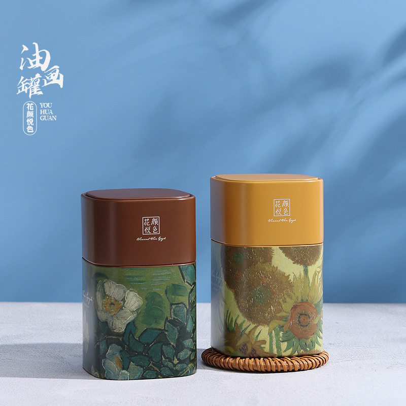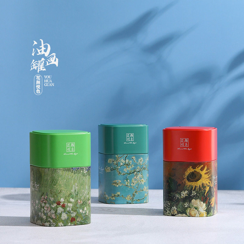 小号50克复古油画茶叶罐铁罐红茶绿茶白茶通用茶叶包装盒铁盒空盒