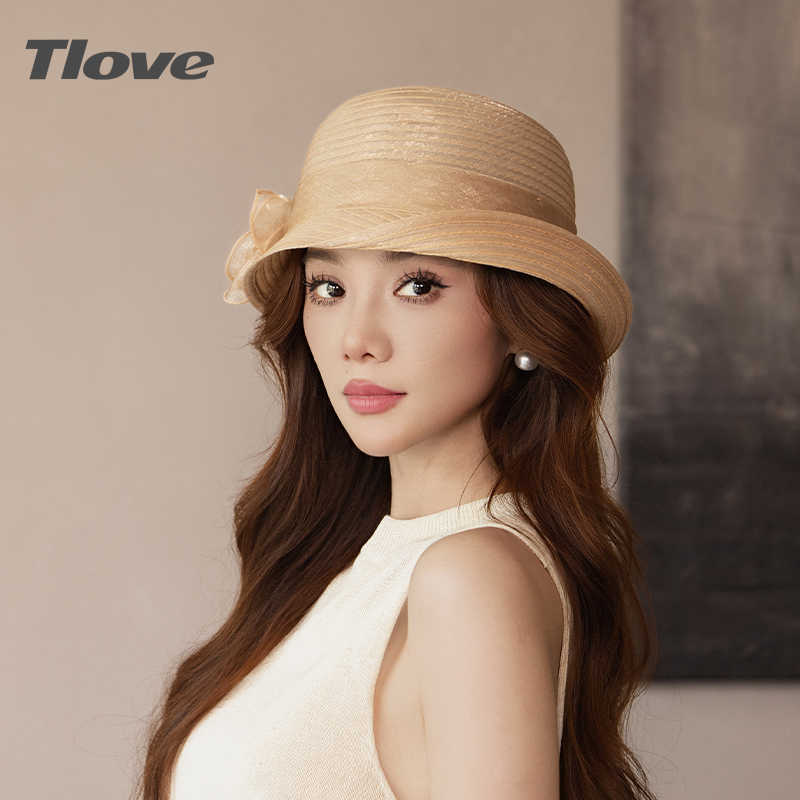 t3091遮阳帽女夏季防晒帽时尚百搭太阳帽花朵春秋欧根纱渔夫帽