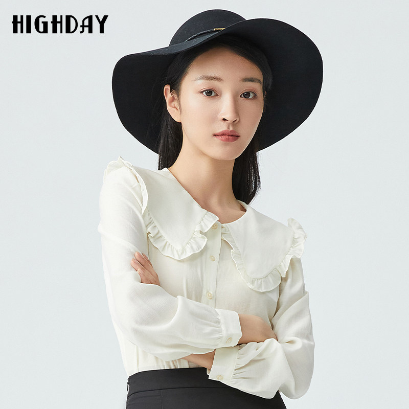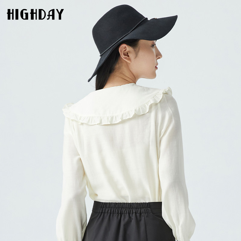 highday轩日2025春秋新款娃娃领衬衫女木耳花边打底衬衣白色上衣