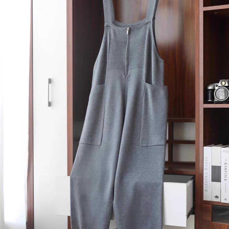 冬季新款羊毛裤纯色百搭宽松针织背带裤休闲时尚垂感外穿羊绒长裤