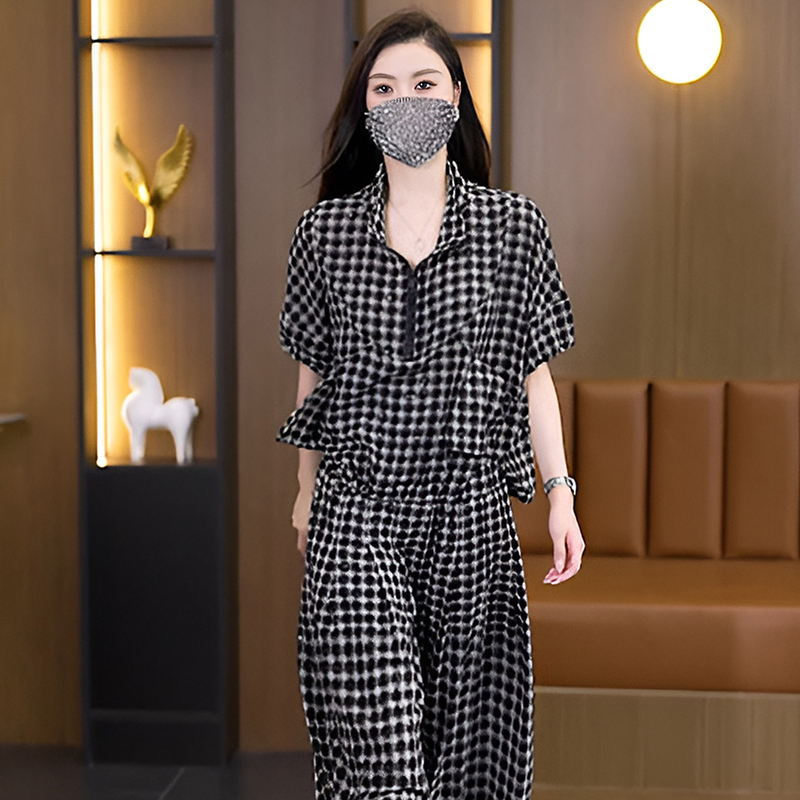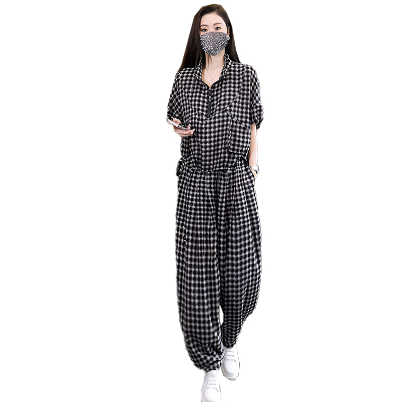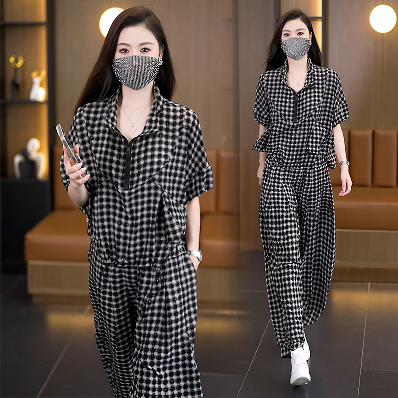 大码女装时尚休闲套装女2025夏季新款宽松显瘦衬衫+哈伦裤两件套