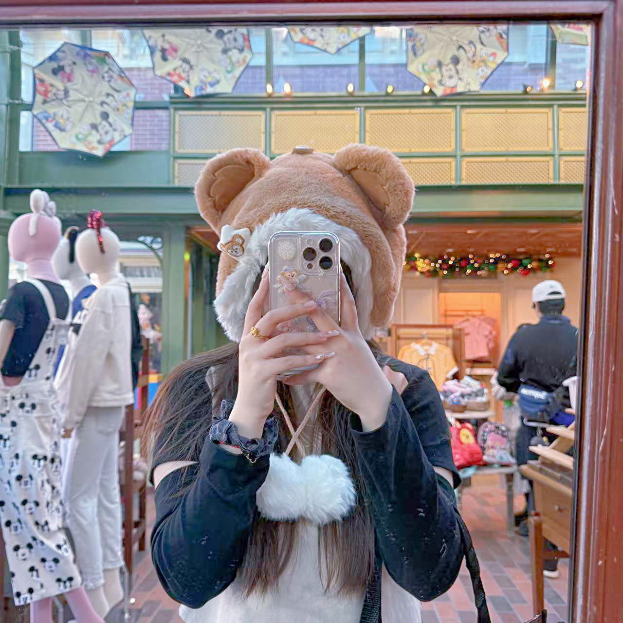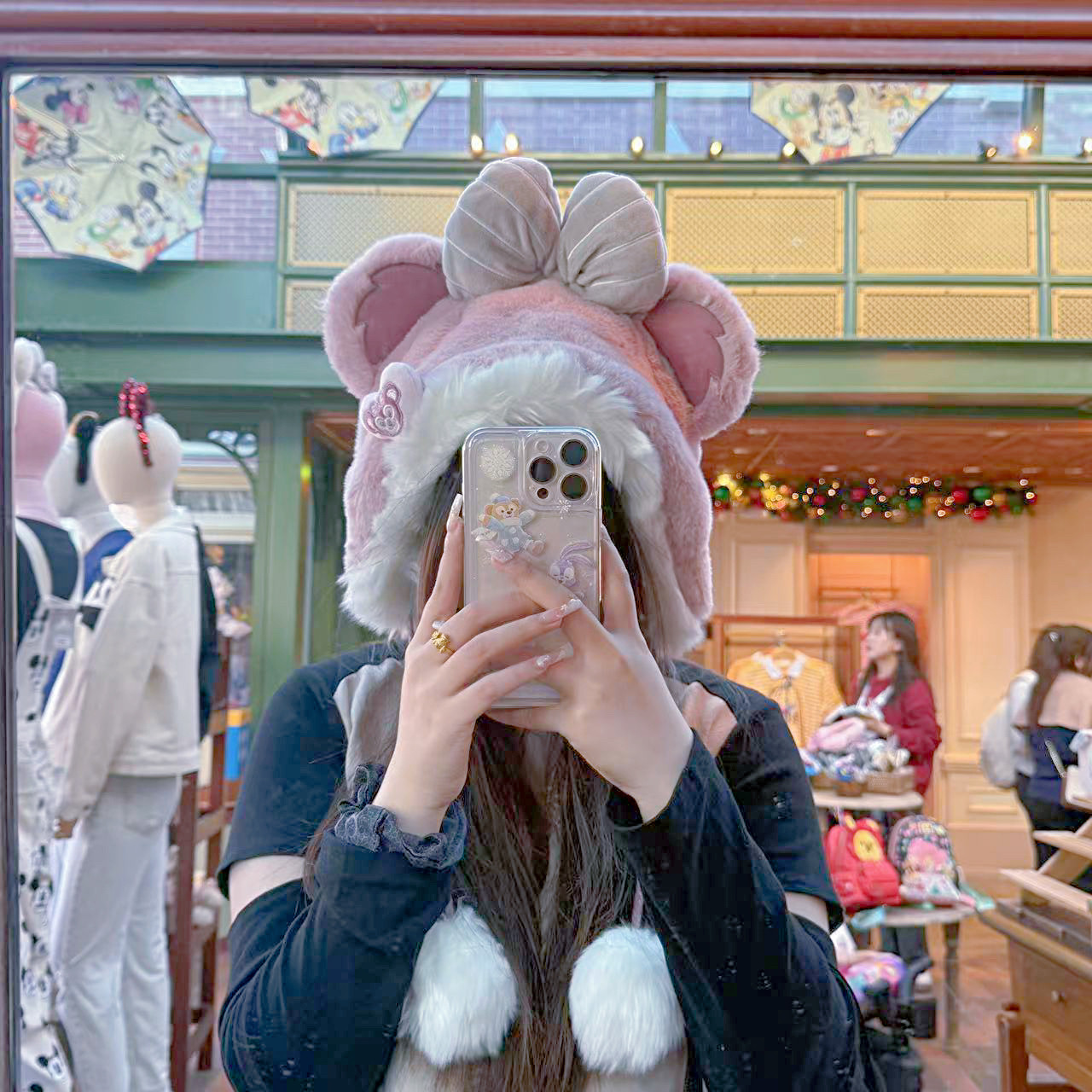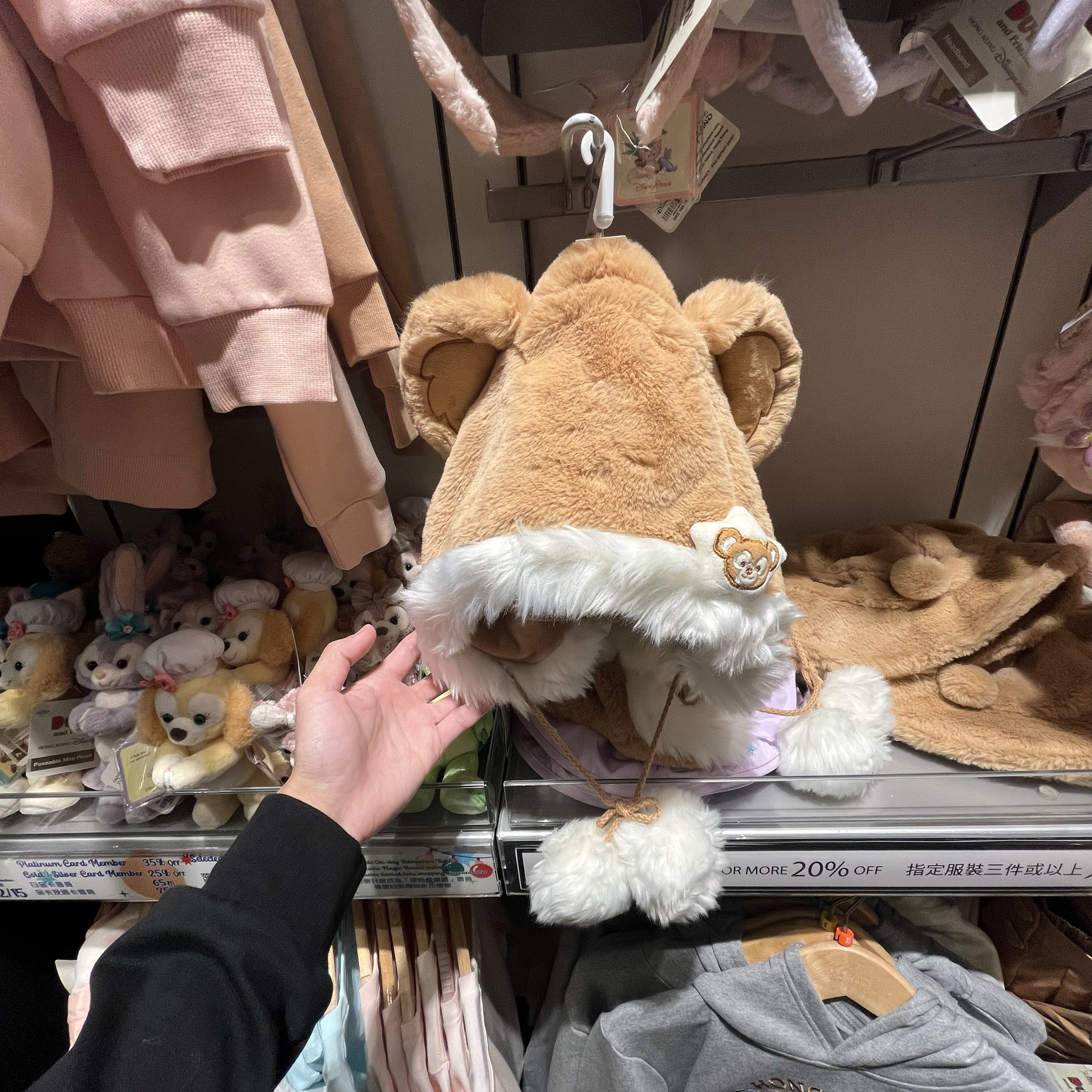 香港迪士尼 达菲雪莉玫套头帽子 成人保暖帽子 情侣冬季出游帽子