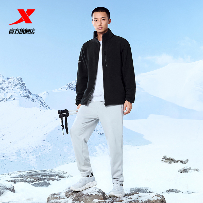 特步加绒夹克外套男款2025秋季新款摇粒绒加厚户外保暖内胆抓绒衣