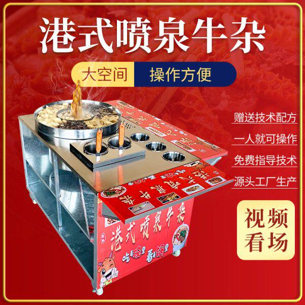 移动煮面摆摊车港式麻辣烫商用网红喷泉锅牛杂多功能小吃设备燃气