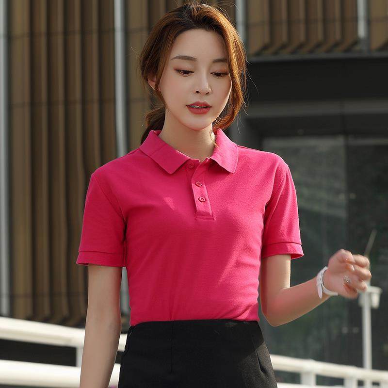 翻领t恤女短袖工作服夏装工装上衣夏季工衣带领polo衫定制印LOGO