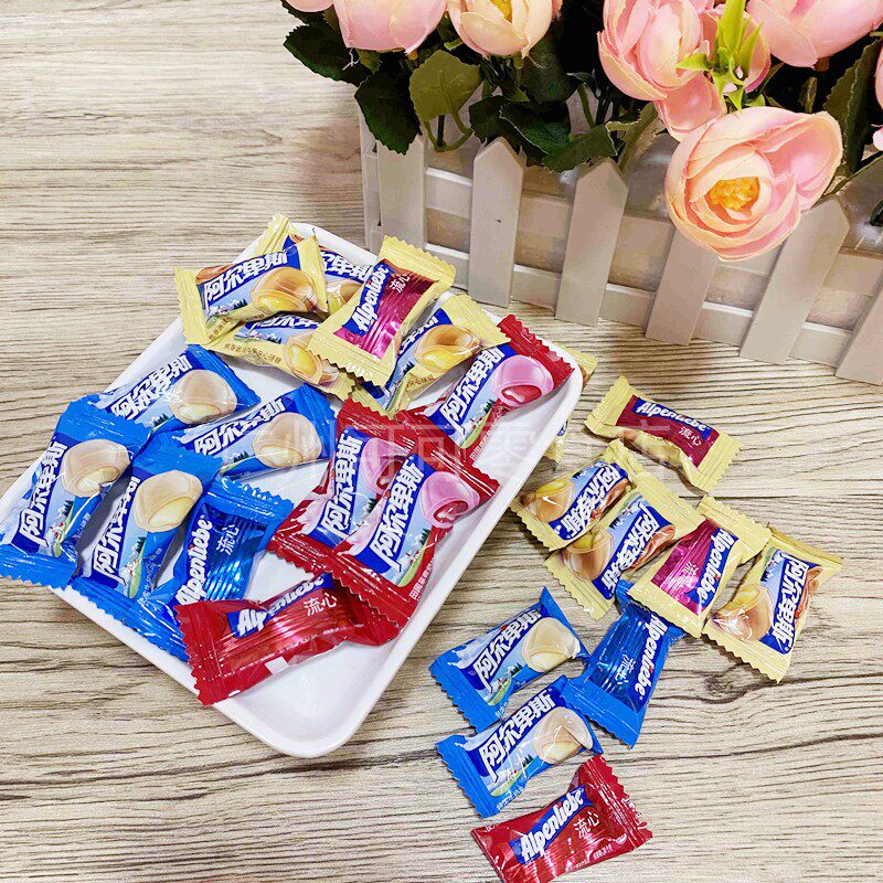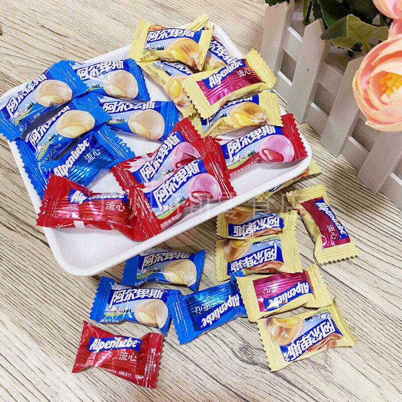 阿尔卑斯夹心硬糖流心糖果焦香源味散装500g特浓牛奶草莓味零食品