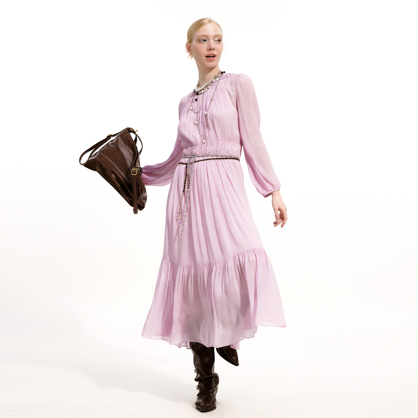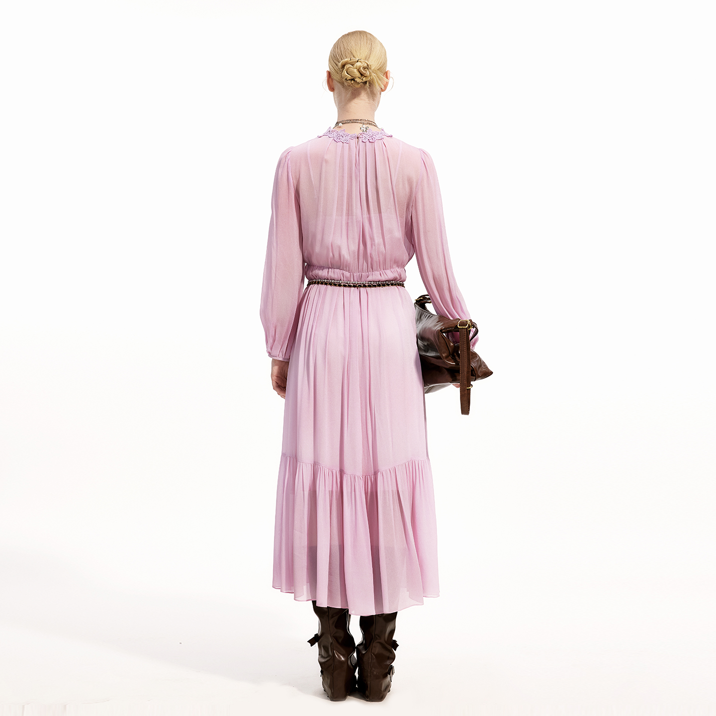 艺之卉蕾丝装饰仙女裙初荷粉浪漫柔美长袖连衣裙2025秋新款