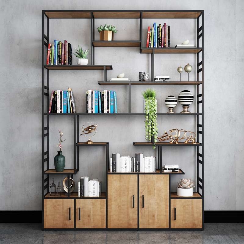 铁艺书架置物架办公室落地书房玄关储物柜展示架工业风隔断书柜