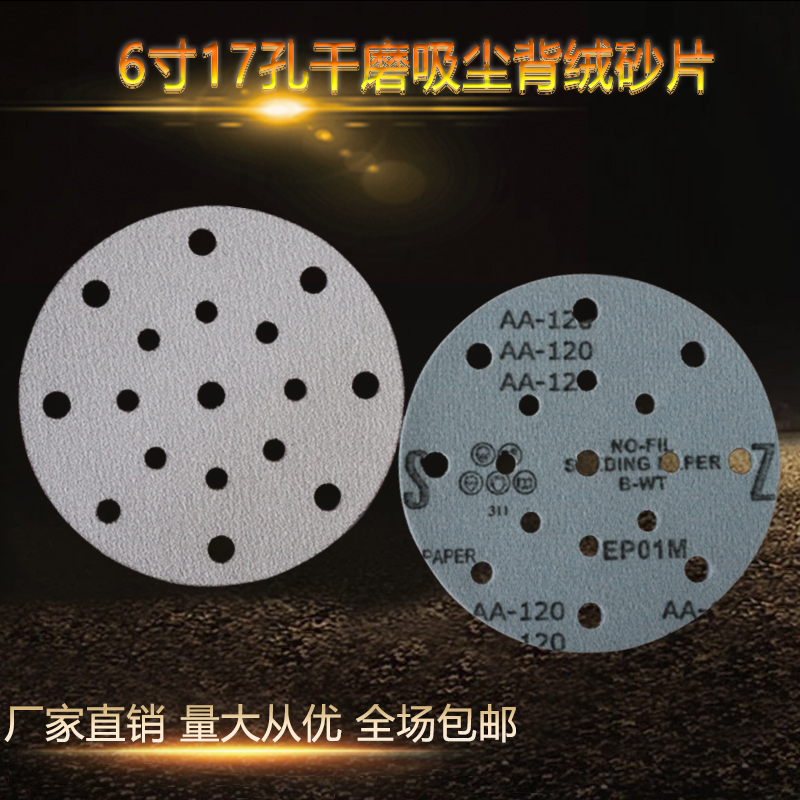费斯托6寸17孔干磨砂150mm圆形植绒砂纸吸尘拉绒片打磨抛光沙纸片