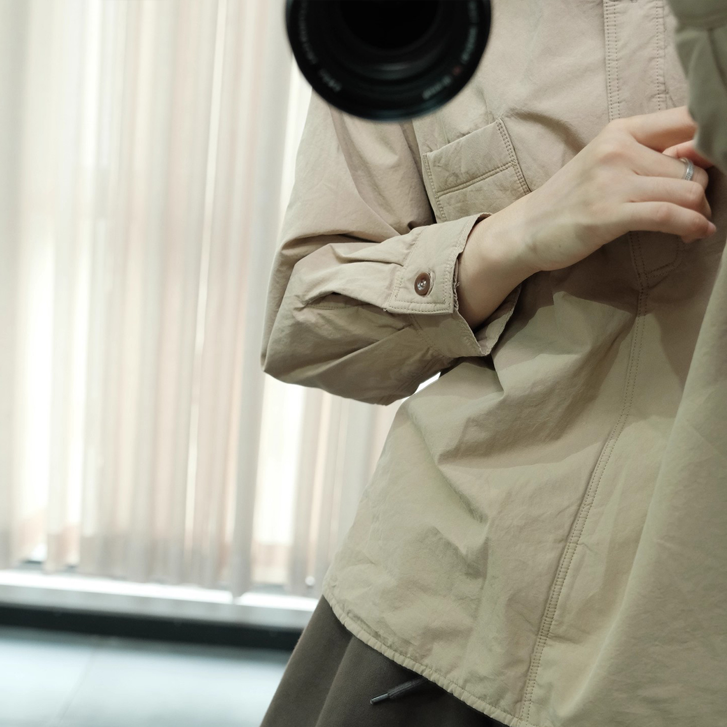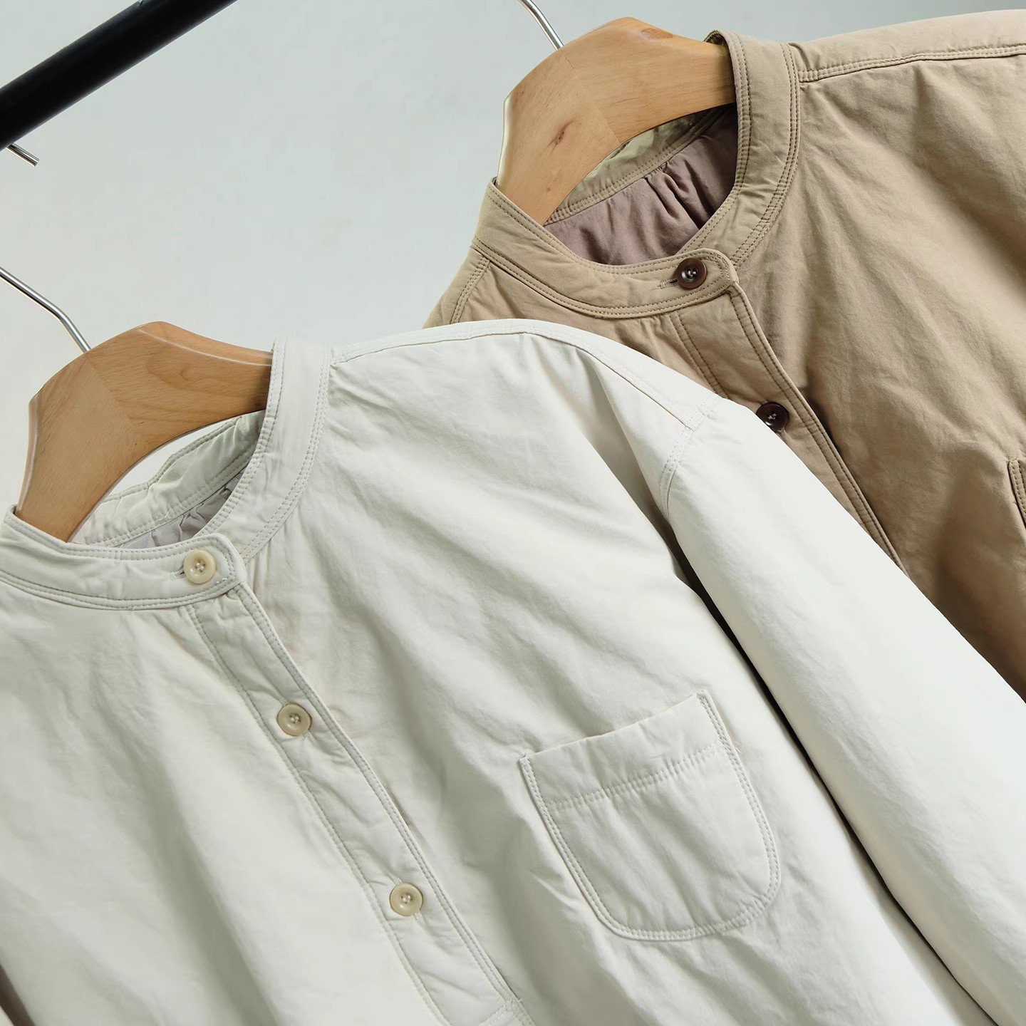 古与色韩版文艺半开扣立领宽松大码休闲百搭长袖夹棉衬衫棉衣女冬