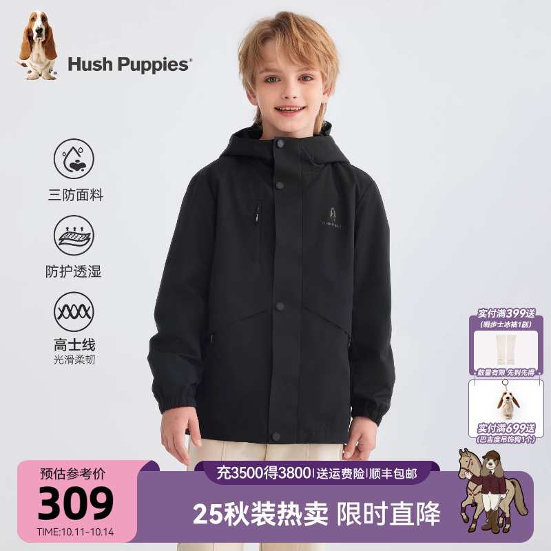 暇步士童装儿童三防风衣25秋新品男童休闲连帽女童轻户外运动外套