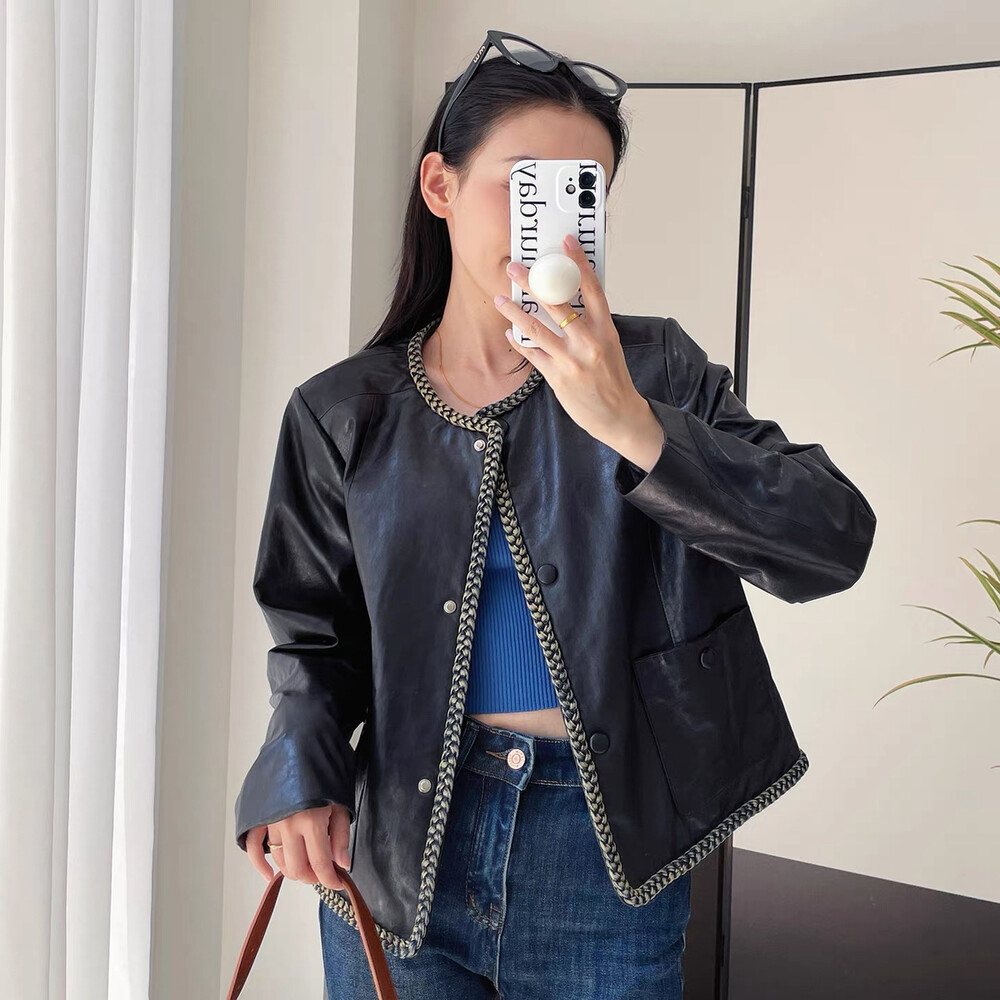 莓果油蜡绵羊皮夹克外套短款真皮皮衣女春秋小个子皮衣FSAL238