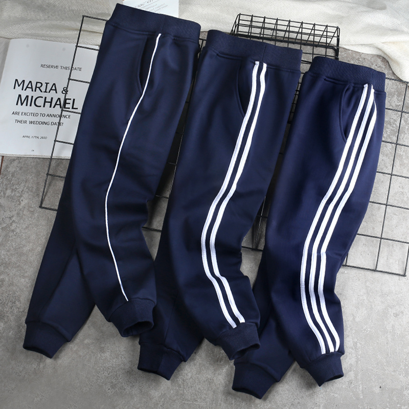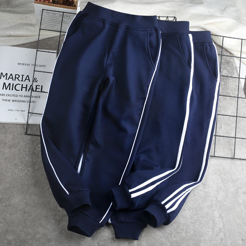 儿童运动裤深蓝男童女童藏青色小学一条杠校服裤子冬季加绒棉裤