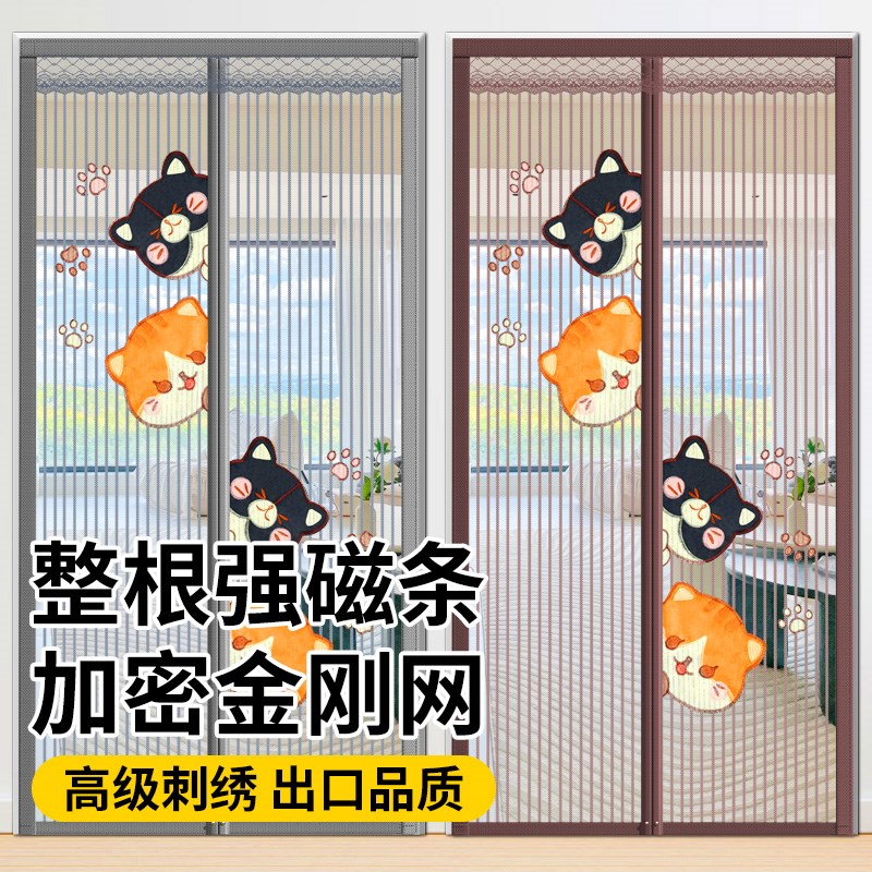 加宽加厚2025新款高档防蚊门帘磁性对吸刺绣纱门纱窗网家用全磁条
