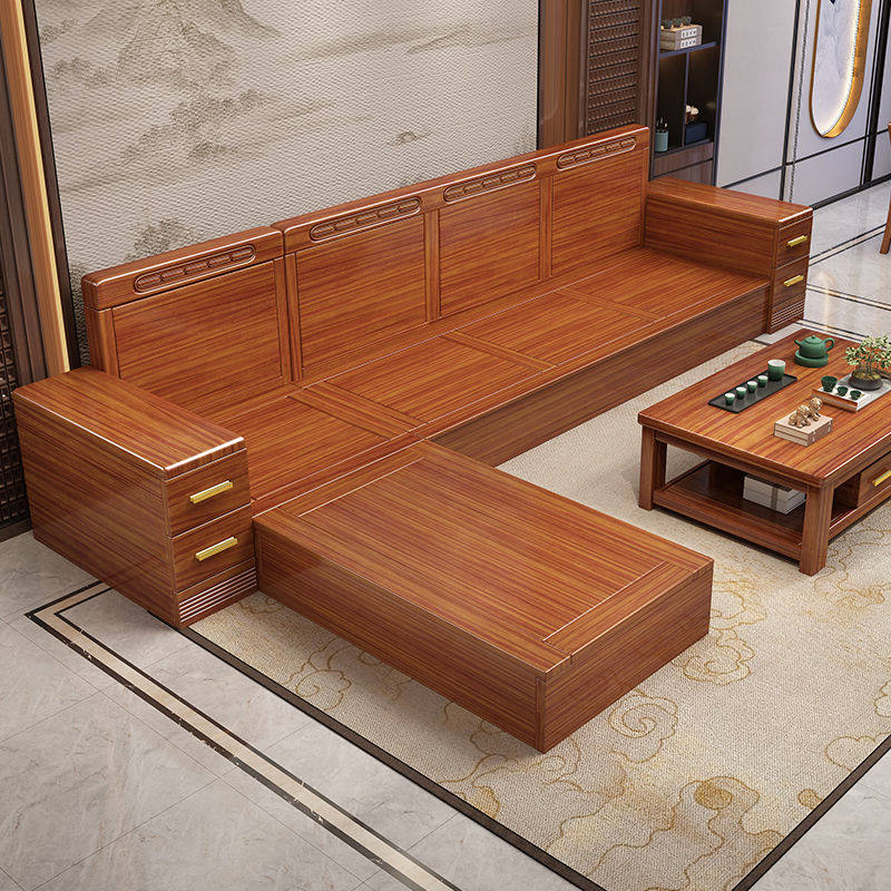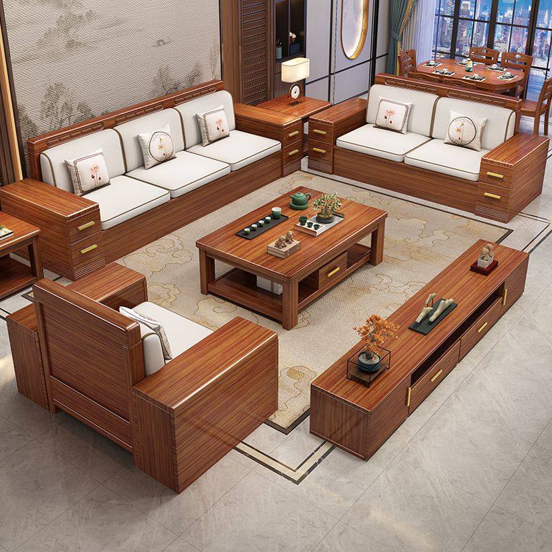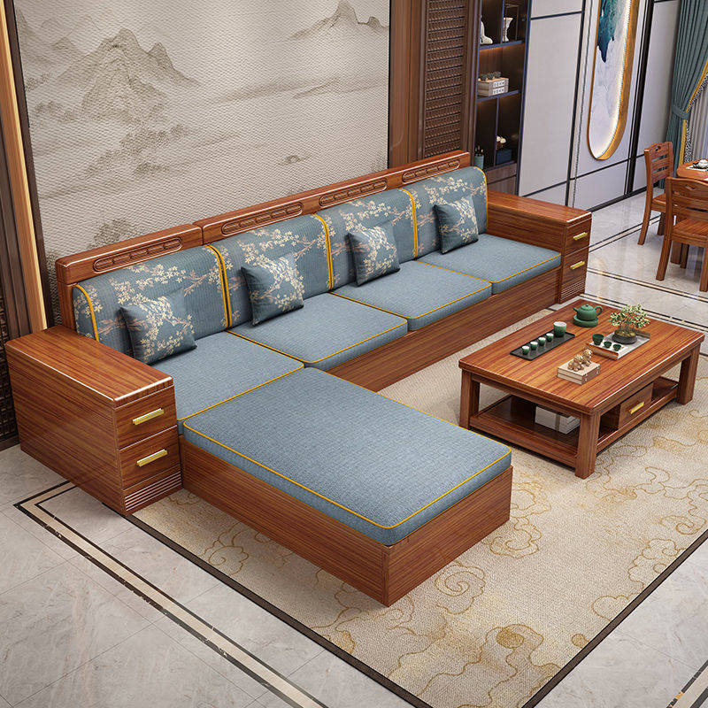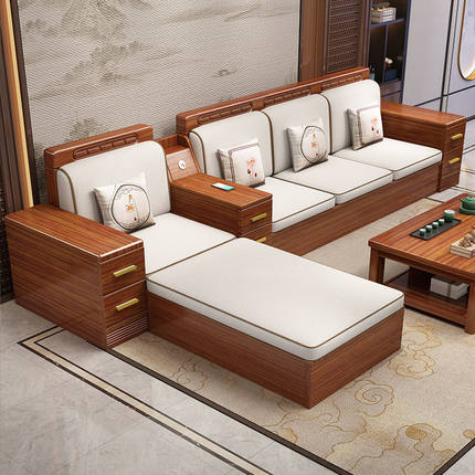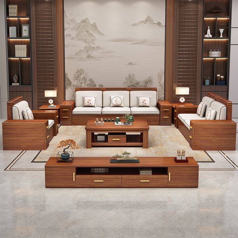 新中式胡桃木实木沙发组合现代简约客厅大小户型冬夏两用储物沙发