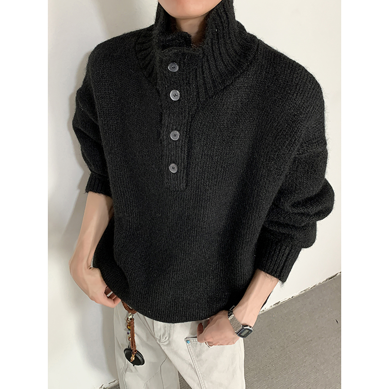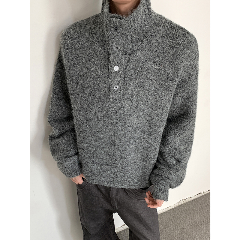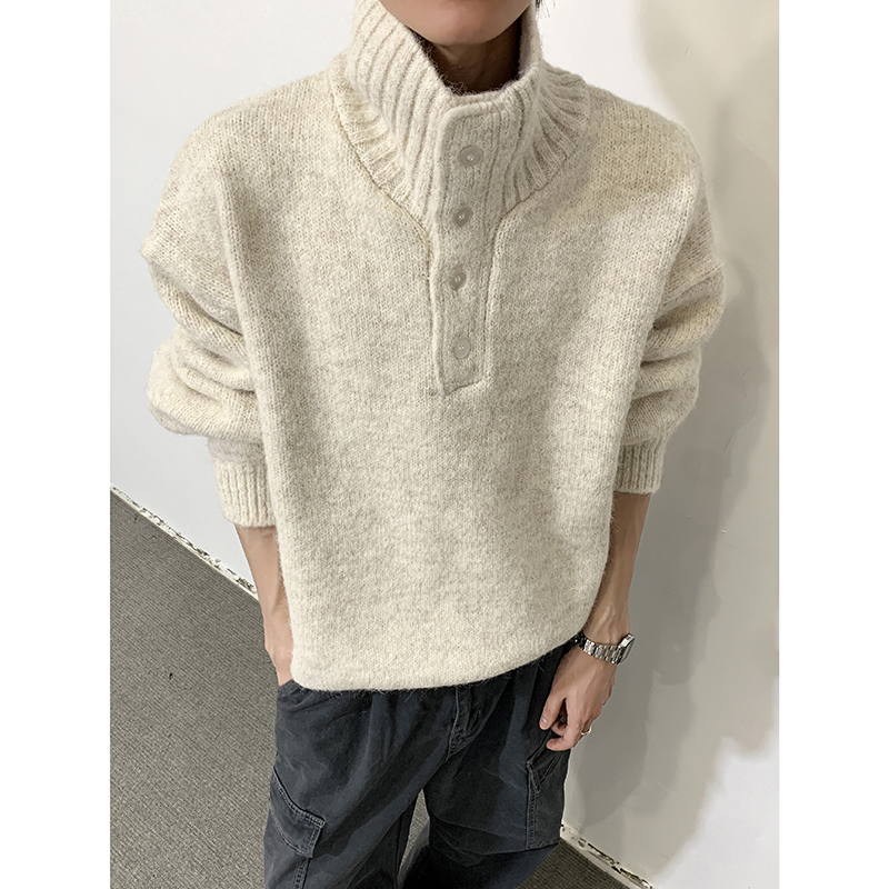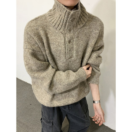 美式内搭高领灰色毛衣男生冬季加厚宽松重磅套头保暖针织衫高级感