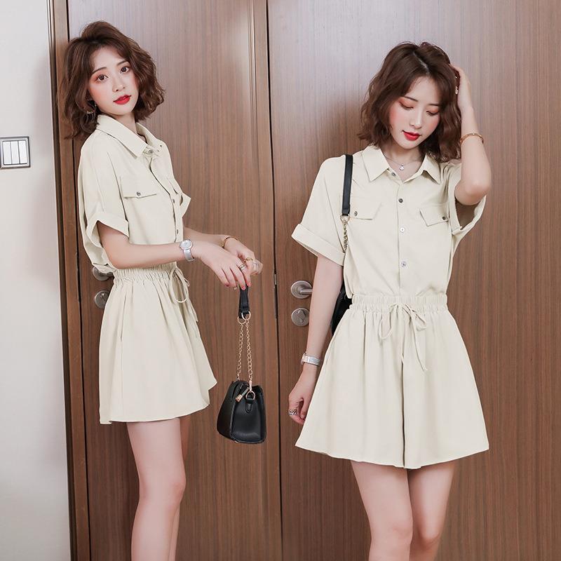 尚短裤ZDONG02套装女夏新款韩子版流行季小个气质雪纺上时衣两件